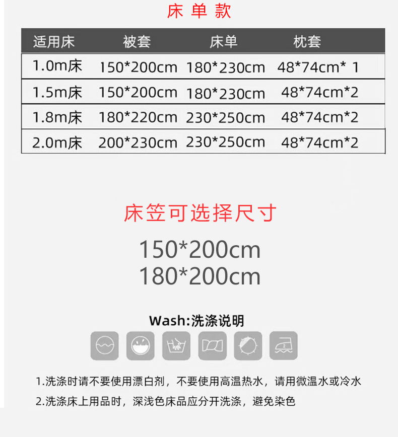 【床笠款】1.8四件套-被套200x230 | ¥76.00 |