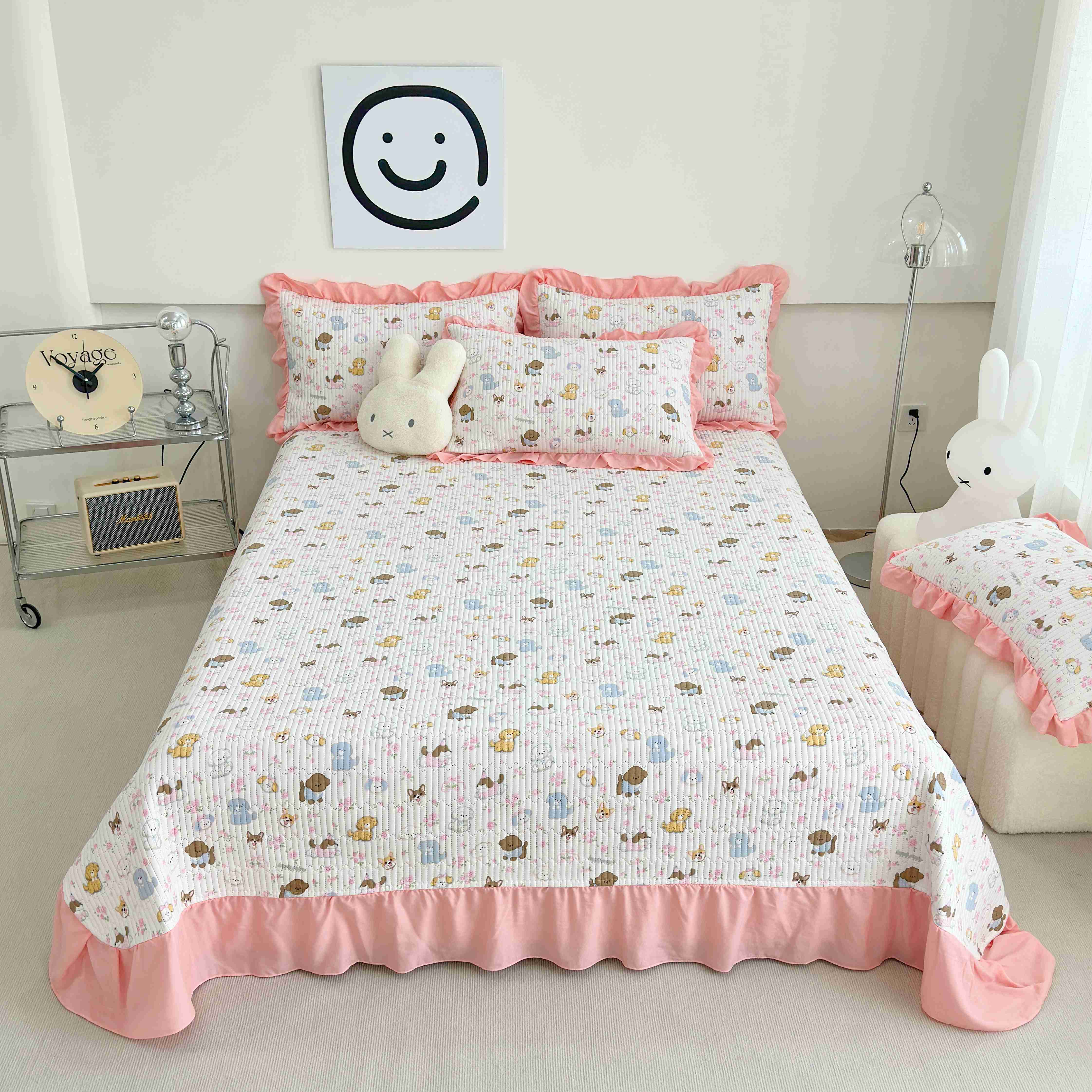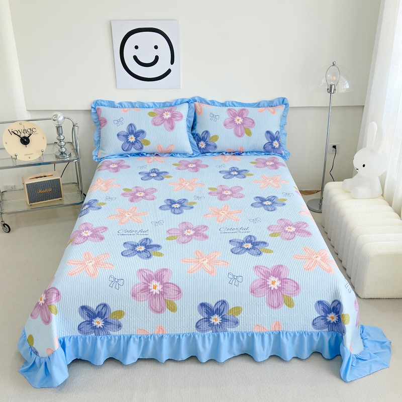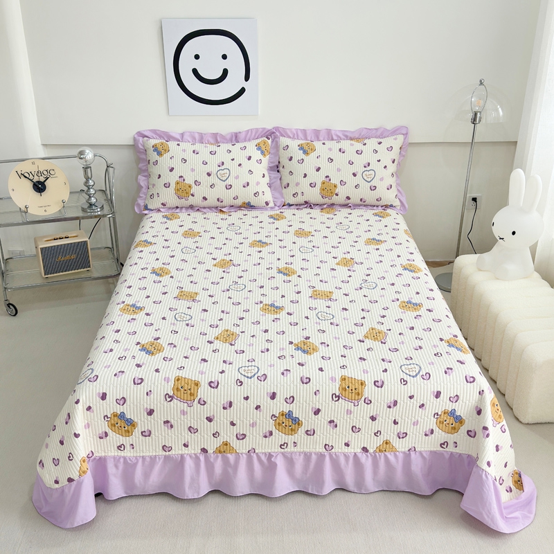 赛琳 2026新款水洗棉花边床盖单件床盖四季通用夹棉床盖 床盖单件 格子小熊