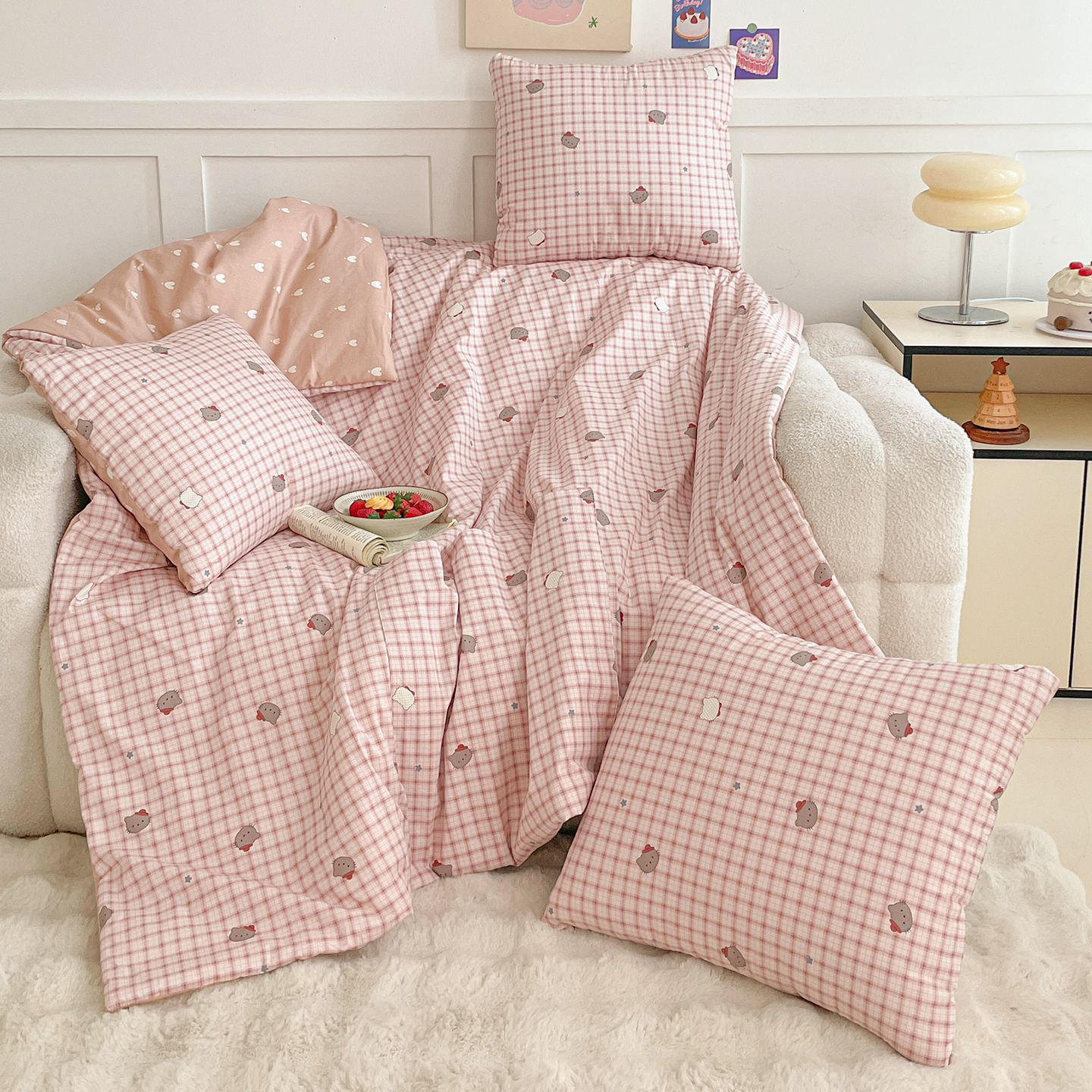 (总)多米家居 2026新款口袋印花抱枕被单品,彩虹小马,格韵-咖,格韵-蓝,格子小象,海底世界,黑皮猫,花又开-粉,静谧午后,千鸟格,森境-绿,小皇冠,星星点点