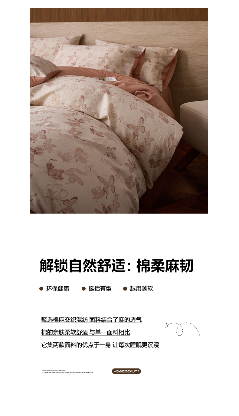 商品名称:如一 2026新款A类复古全棉棉麻印花四件套 蝶影