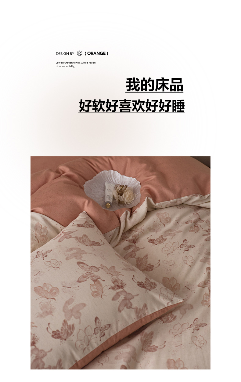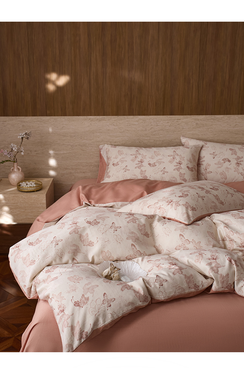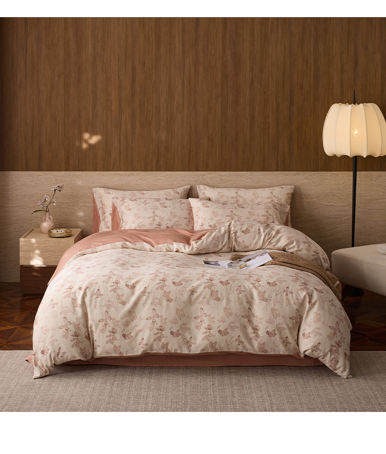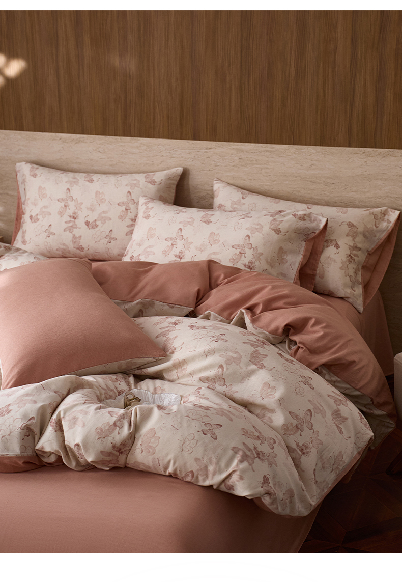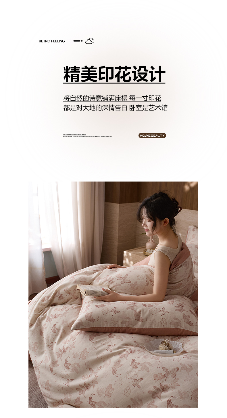 如一 2026新款A类复古全棉棉麻印花四件套 蝶影