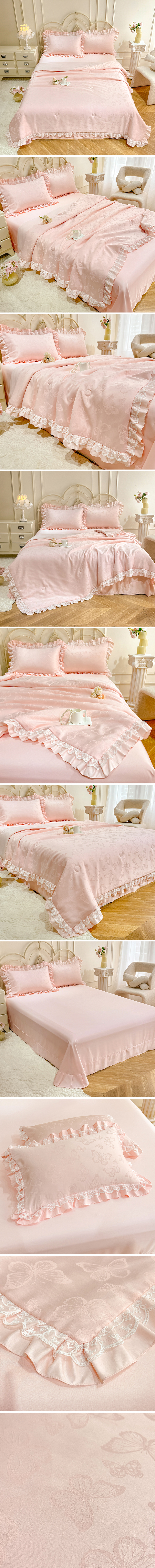 优贝家纺 2026春夏新款提花水洗天丝冰丝天丝韩版夏被夏凉被空调被四件套 蝶舞-粉