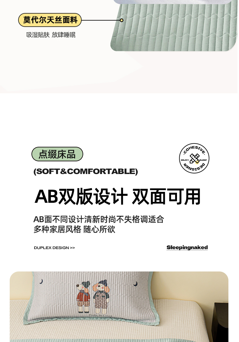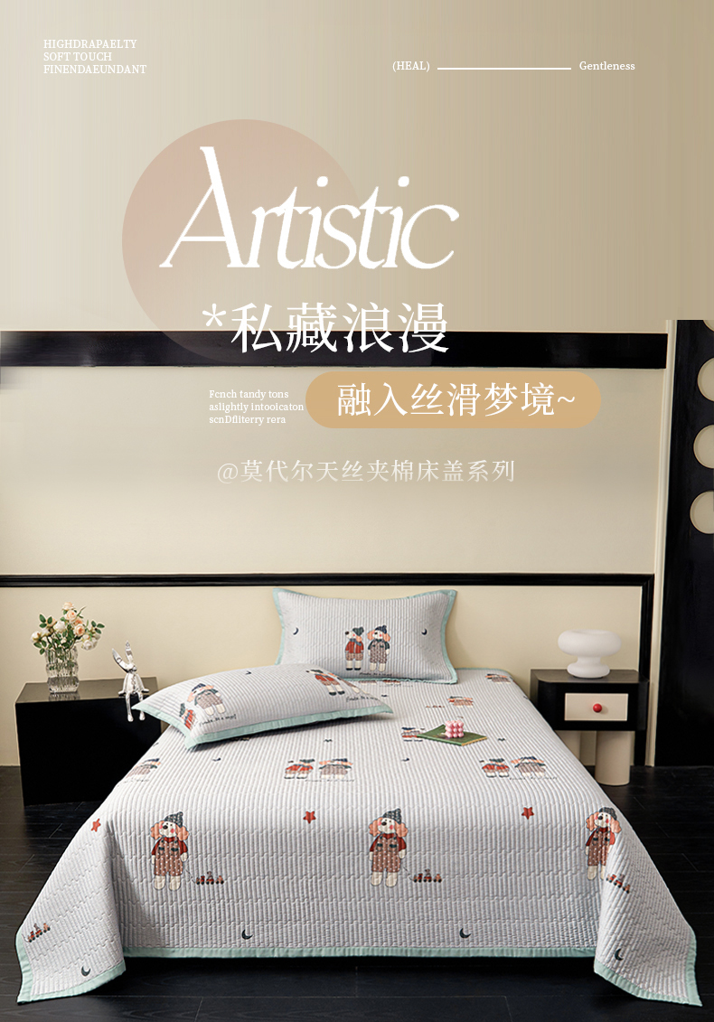 (总)金艾草 2026新款莫代尔天丝印花夏被床盖四件套三件套,蘑菇派,粉色-小象,拉布布-蓝,森林奇遇,山茶花-灰色,山茶花-紫,山菊-灰,桃粉,甜果-绿,香肠狗-绿色,熊熊-蓝,伊特花园