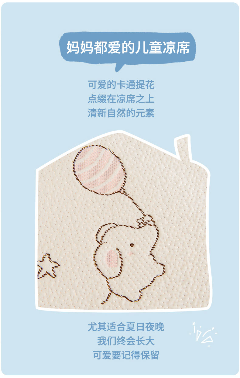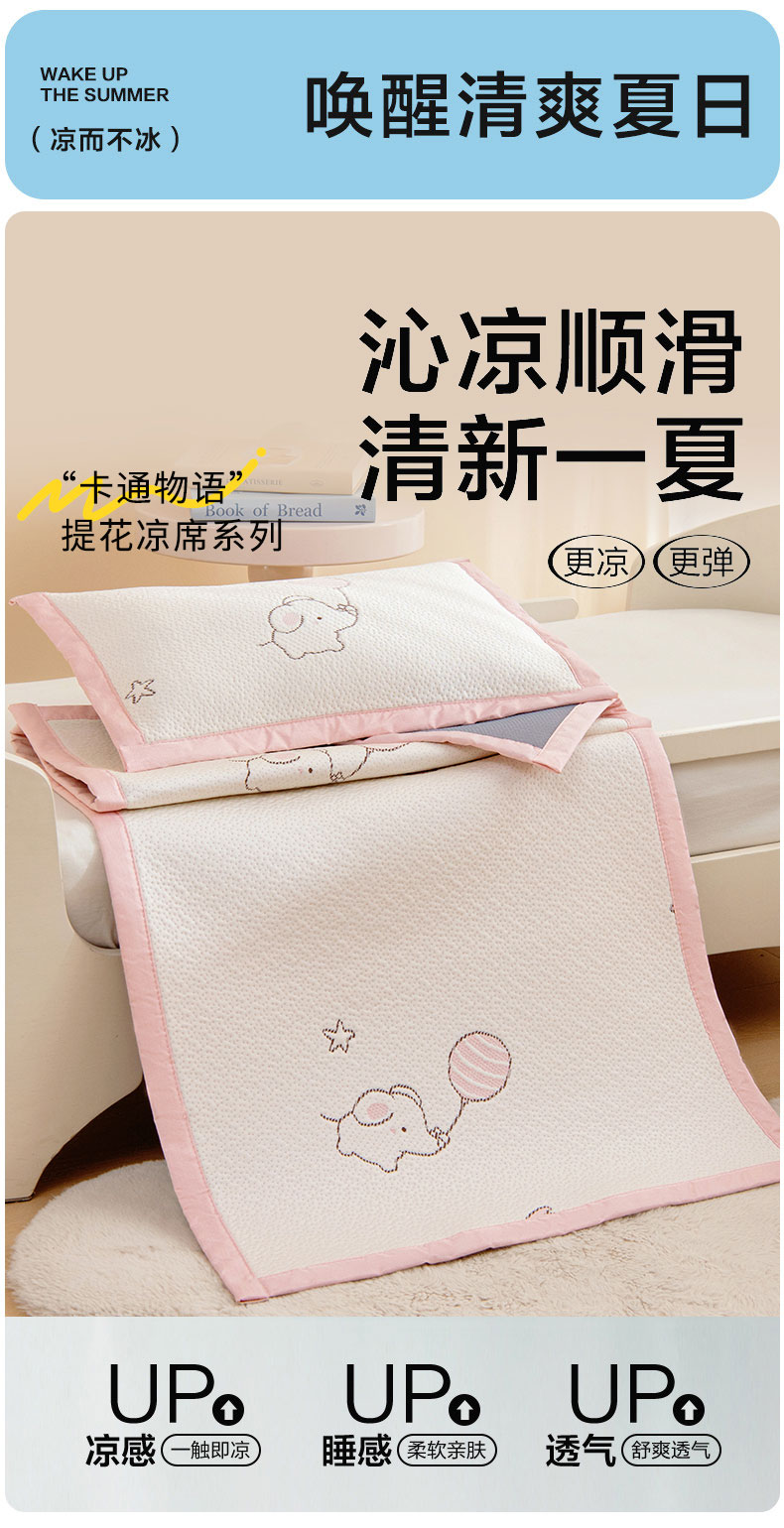 • 91家纺网 家纺一手货源 找家纺 御棉坊 2026新款A类提花凉感凉席幼儿园席子儿童凉席宿舍床凉席宝宝夏季席子 小飞象