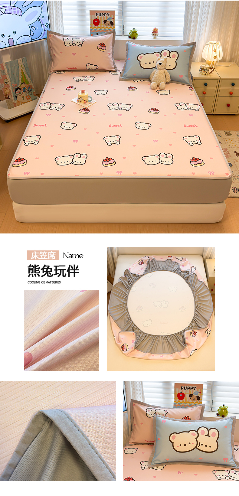 (总)懒猫家纺 2026新款卡通凉感冰丝床笠款凉席,床笠席-冰淇淋小狗,床笠席-彩豆汪汪队,床笠席-彩格萌宠,床笠席-费尔岛,床笠席-格纹爱犬,床笠席-汉堡小狗,床笠席-咖豹小猫,床笠席-酷狗腊肠,床笠席-礼物小熊,床笠席-甜心茶语,床笠席-星愿萌宠,床笠席-熊兔玩伴