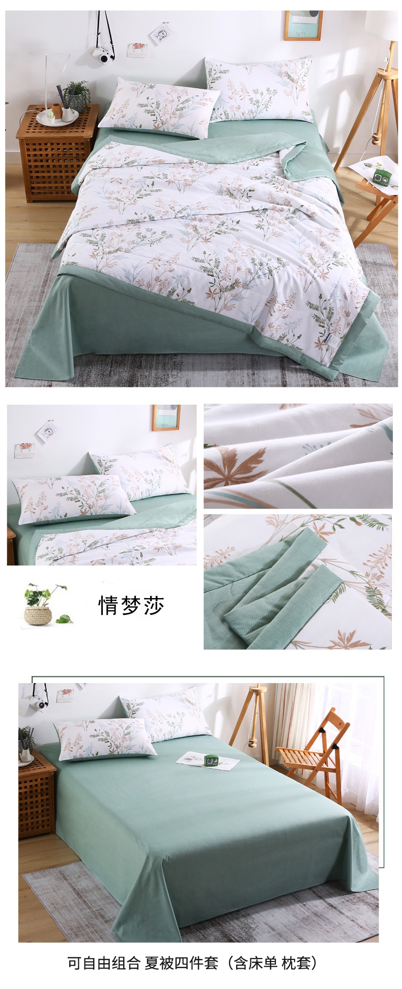 (总)尊妙被业 2026新款全棉亚麻夏被100%新疆棉夏被四件套印花款,桂花影-蓝,半岛玫瑰-蓝,芙香漫野-黄,花间意镜-红,花香满园-红,锦绣-绿,兰枝玉树-蓝,木兰辞-红,青花记-绿,晚枝-灰,叶枫-绿,映雪-绿,组合图