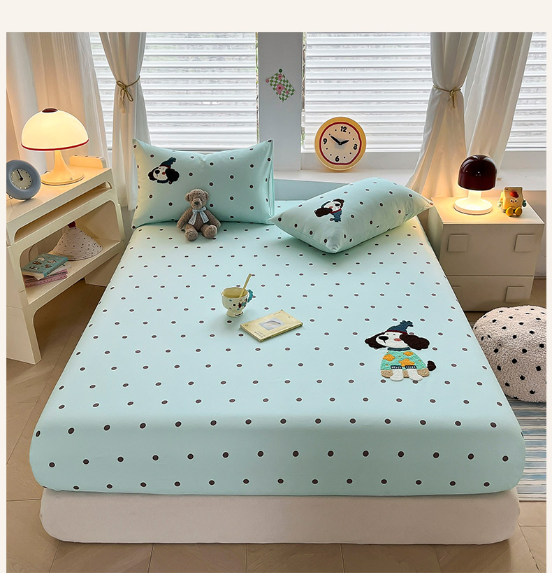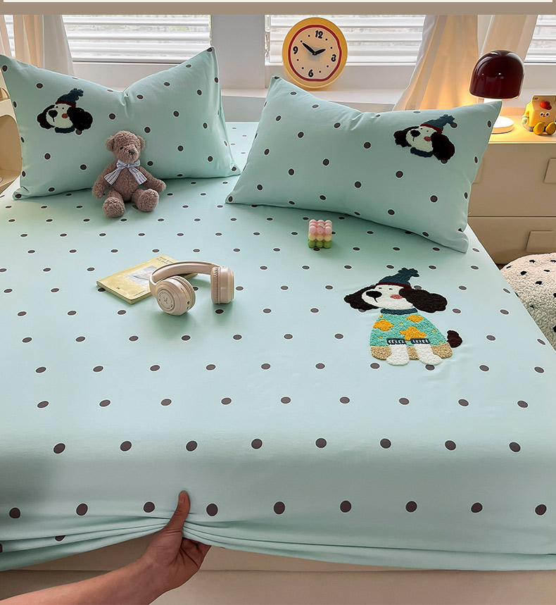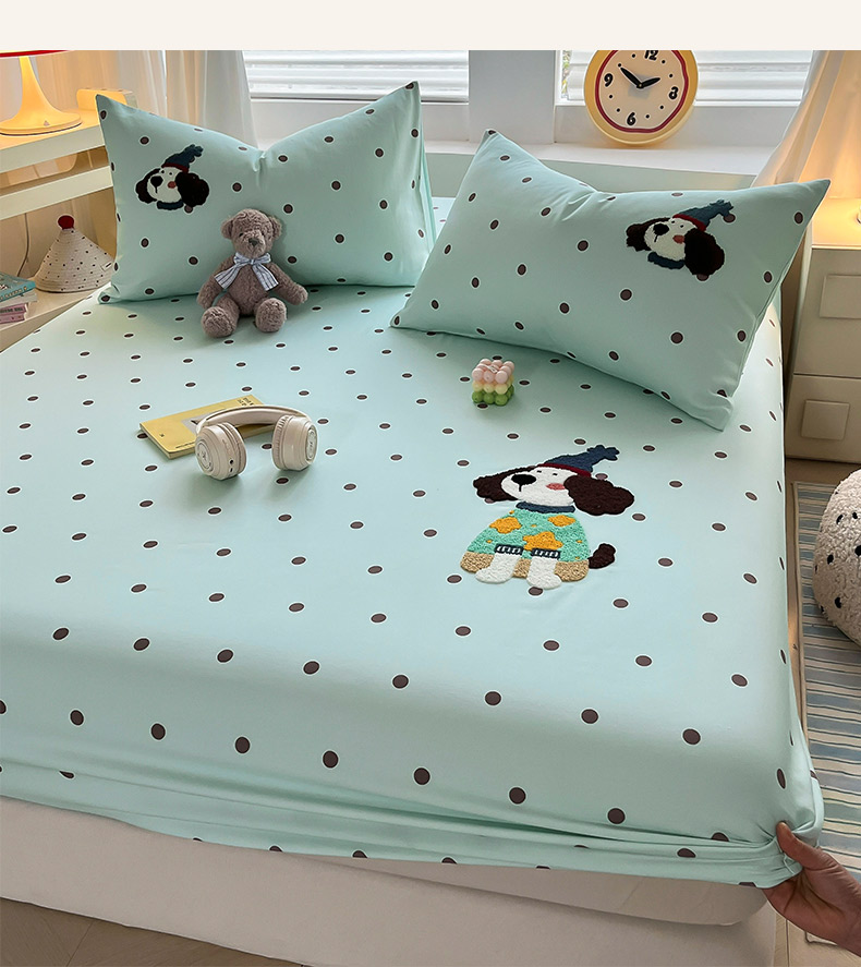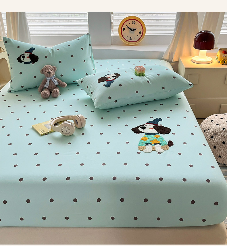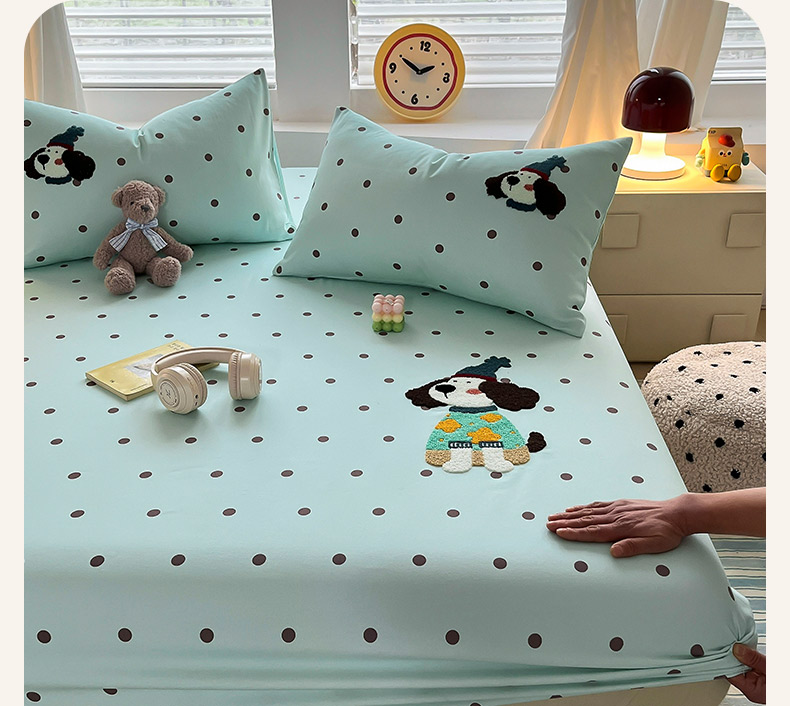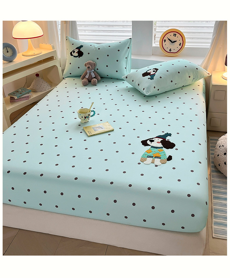 其奥家纺 2026春夏新款纯棉全棉老粗布床笠印花凉席 欢乐狗-蓝黑点
