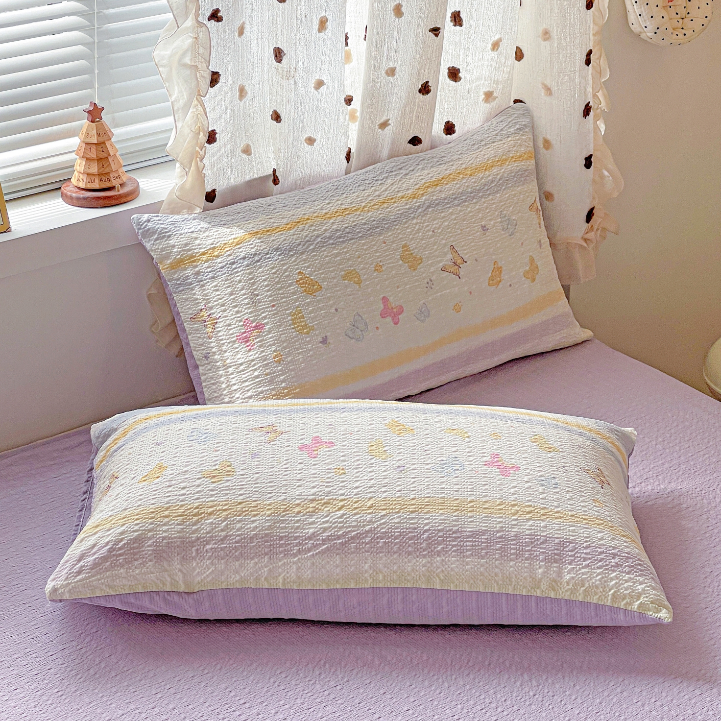 商品名称:一比一家纺 2026新款泡芙纱简款夏被四件套 浪漫彩蝶