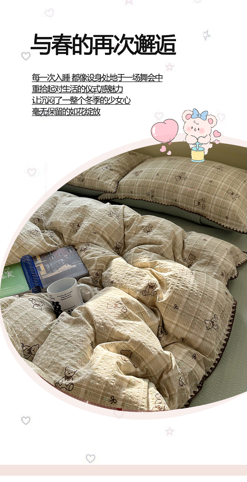 当前位置: 91家纺网 > 商品网购 > 床品套件 > 四件套 > 其它四件套 > 几禾 2026新款高品质A类110g泡芙纱甜栗贝壳边四件套 甜栗-木马小花团