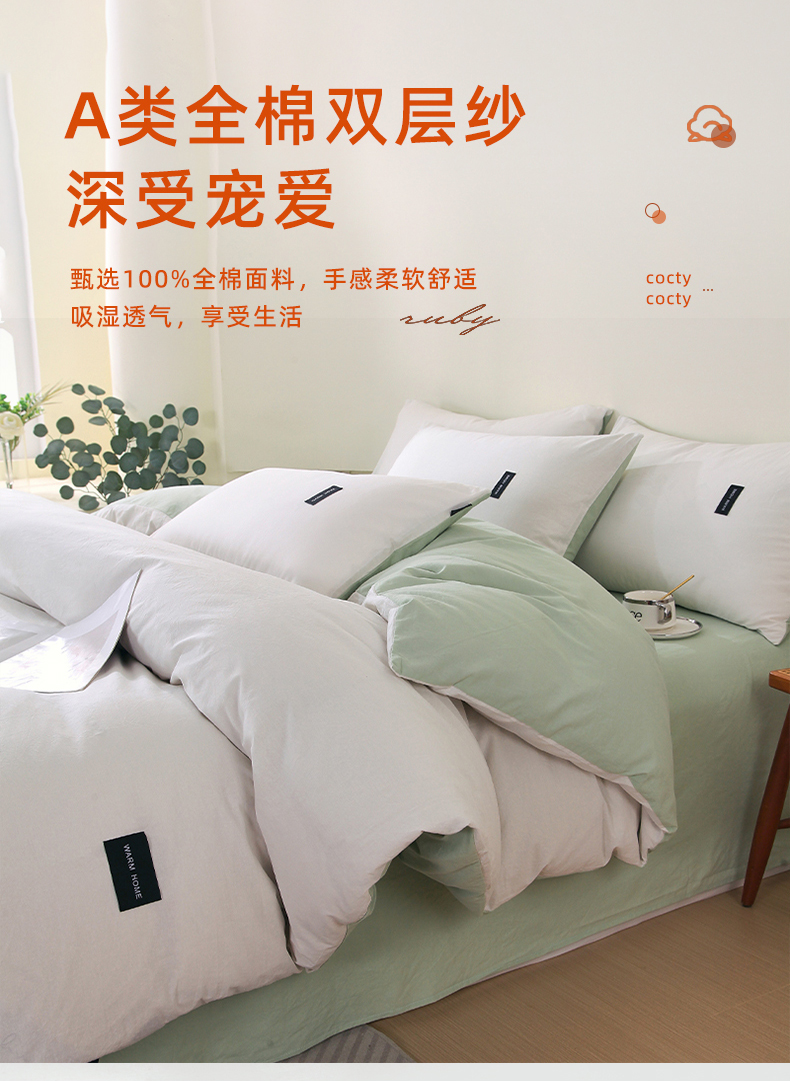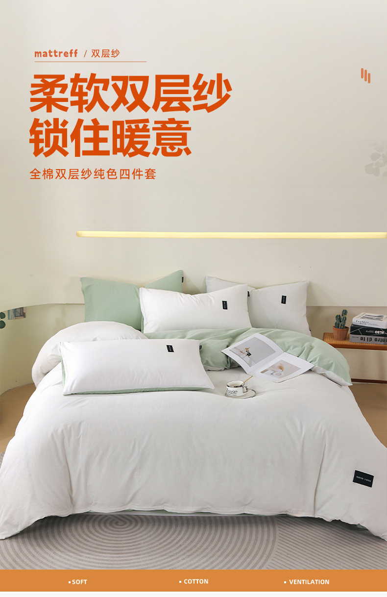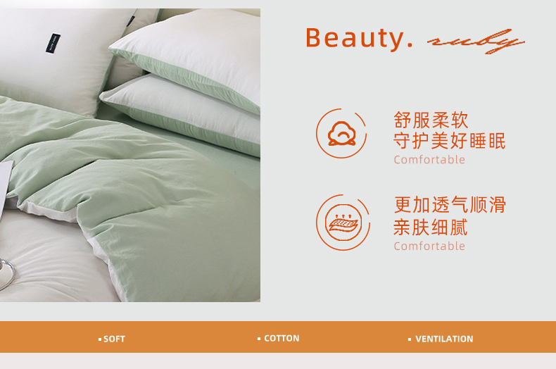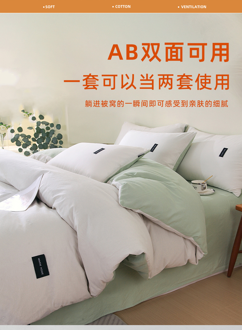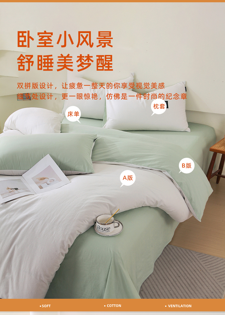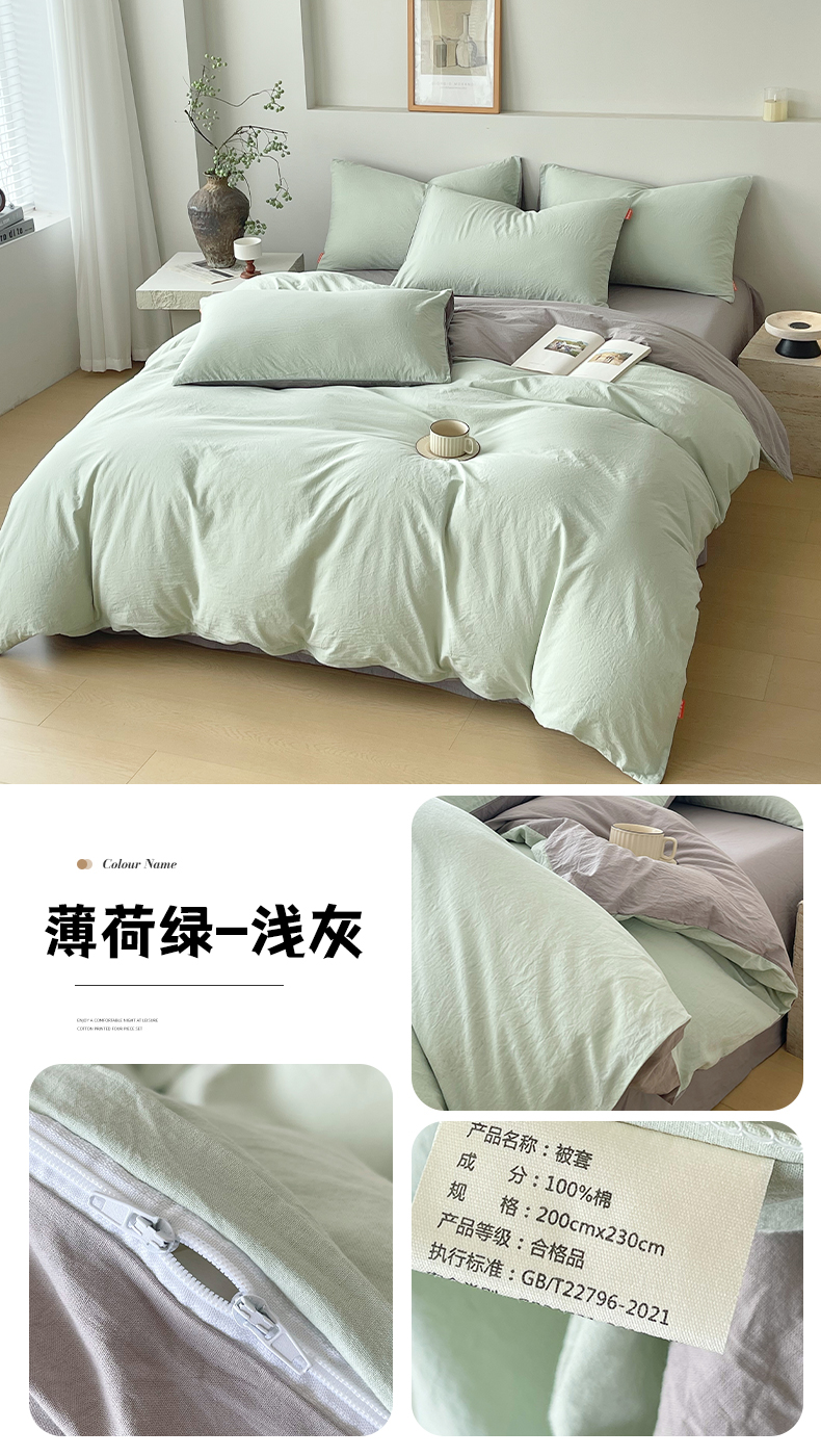 当前位置: 91家纺网 > 商品网购 > 床品套件 > 四件套 > 全棉普通四件套 > 春皖家纺 2026春夏新款双拼全棉纯棉水洗棉四件套 薄荷绿珍珠白
