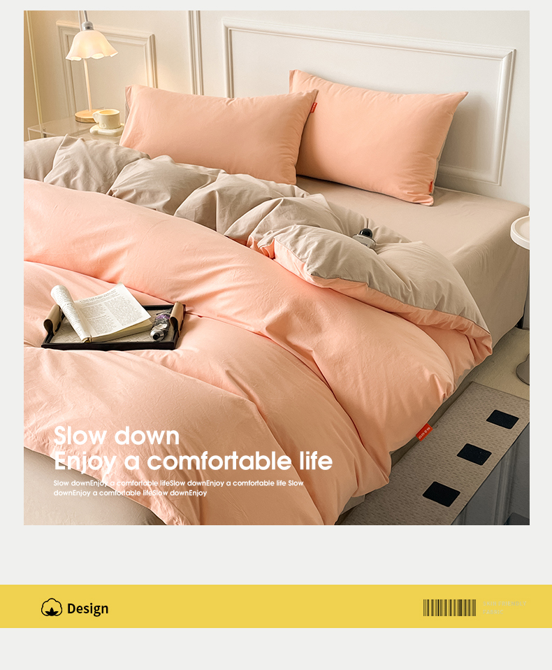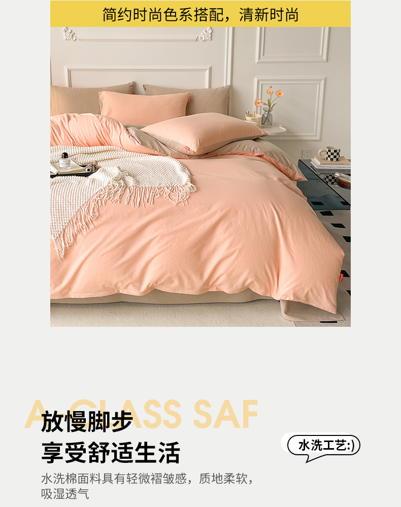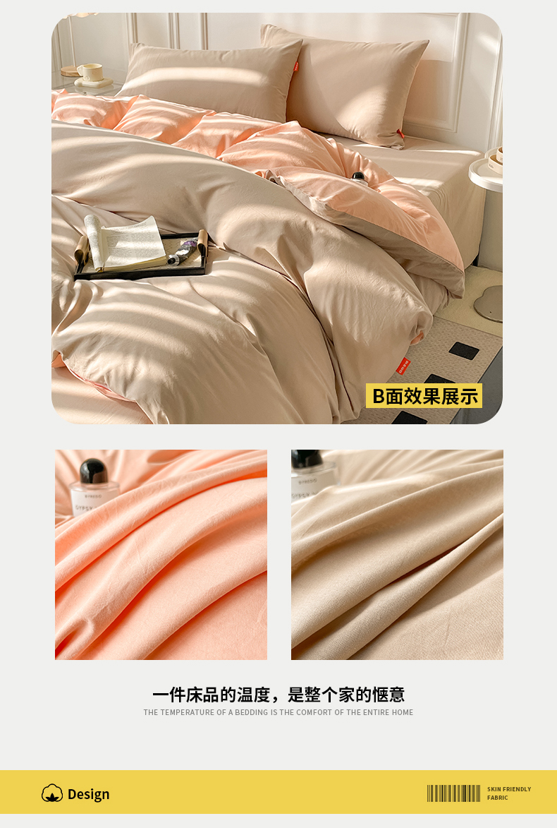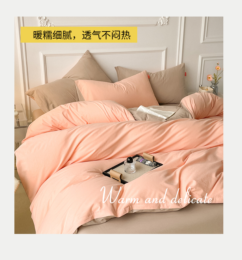 当前位置: 91家纺网 > 商品网购 > 床品套件 > 四件套 > 全棉普通四件套 > 春皖家纺 2026春夏新款双拼全棉纯棉水洗棉四件套 浅玉-卡其