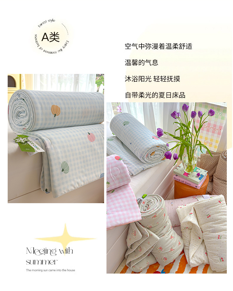 (总)弗苓家纺 2026新款A类云感有氧双层纱夏被夏凉被,摘星,星星人,英伦小熊,小奶球,彩波点,小时光,晚香玉,小花野,云水谣,心动,春日小花,红果小马,奶油泡芙,小南瓜,针织猫趣,苏瑾,甜橙,午后花园,梨花落,组合图