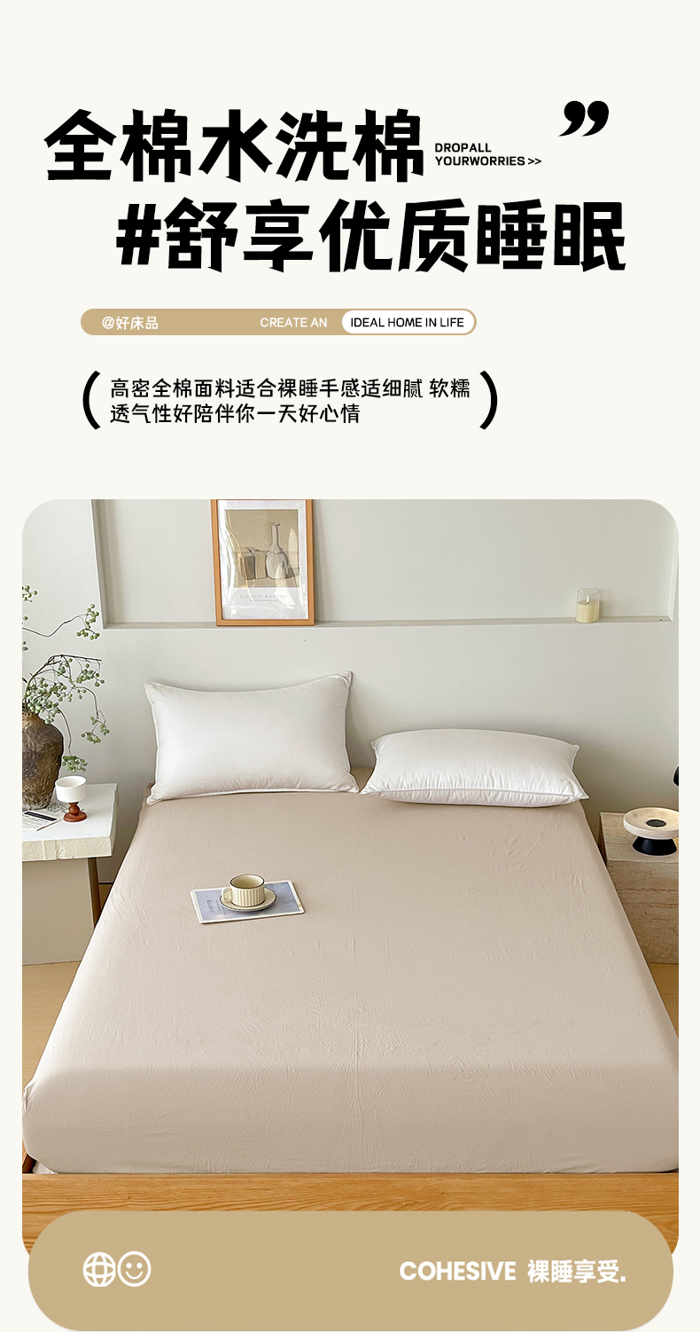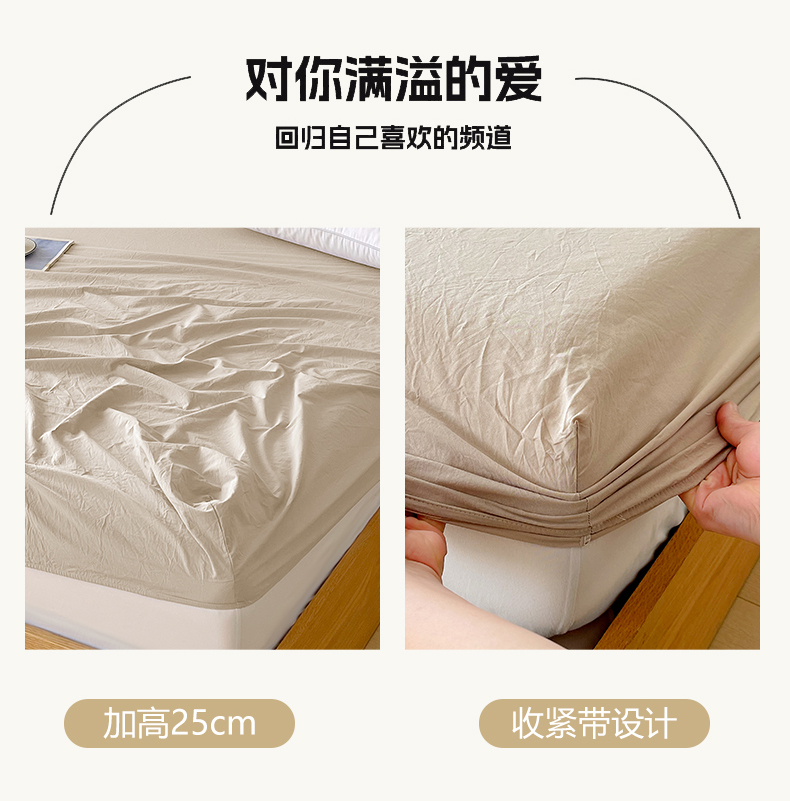 春皖家纺 2026春夏新款双拼全棉纯棉水洗棉单床笠 床笠单件 素雅卡其