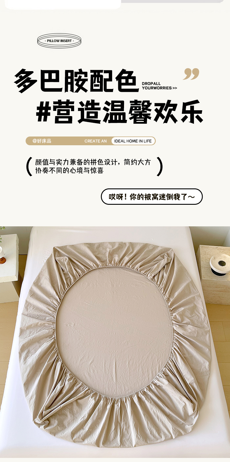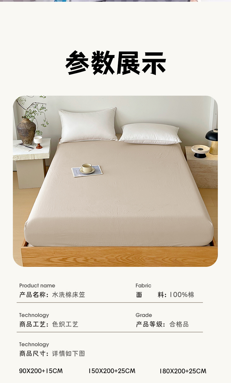 商品名称:春皖家纺 2026春夏新款双拼全棉纯棉水洗棉单床笠 床笠单件 素雅卡其