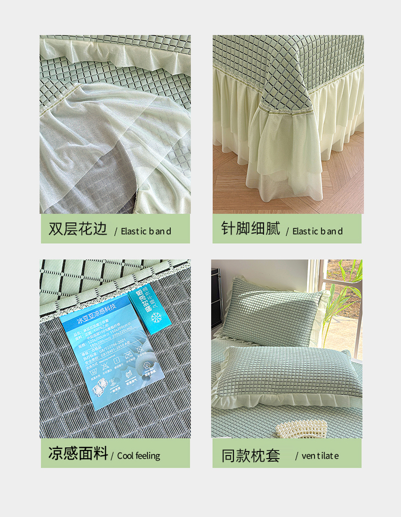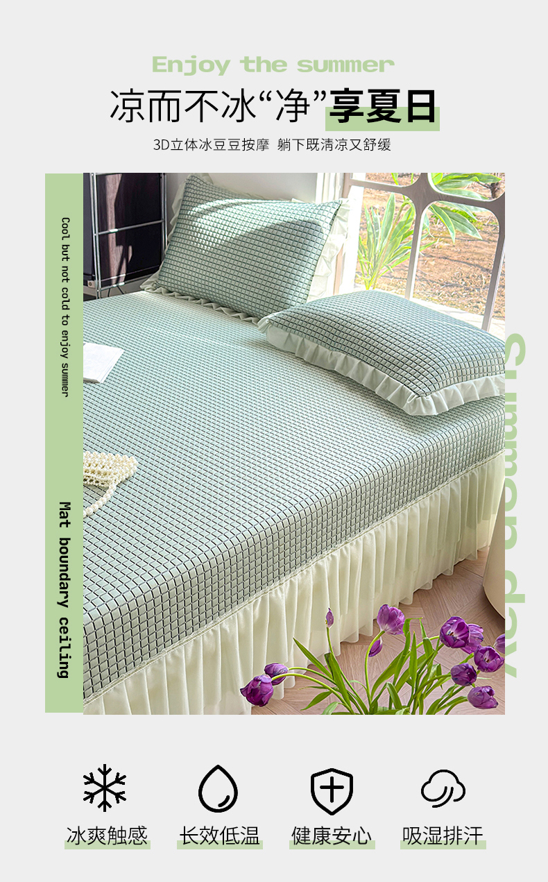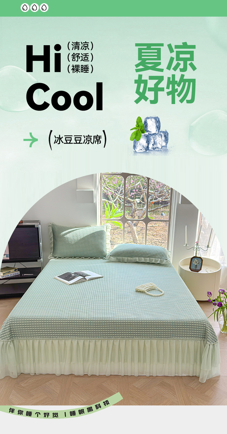 (总)冬然家纺 2026新款【清凉一夏系列】冰豆豆凉席床裙款,清凉一夏-卡其,清凉一夏-粉,清凉一夏-灰,清凉一夏-蓝,清凉一夏-绿