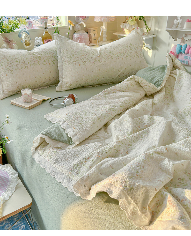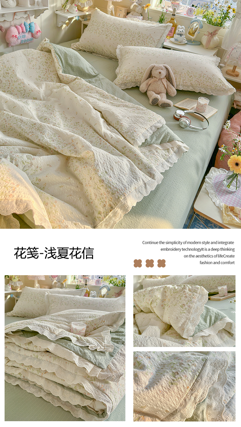被子 > 夏被 > 几禾 2026新款泡芙纱全棉蕾丝花边夏被-花笺系列(甜系花边撞入梦境,软乎乎的质感,治愈所有疲惫) 花笺-浅夏花信