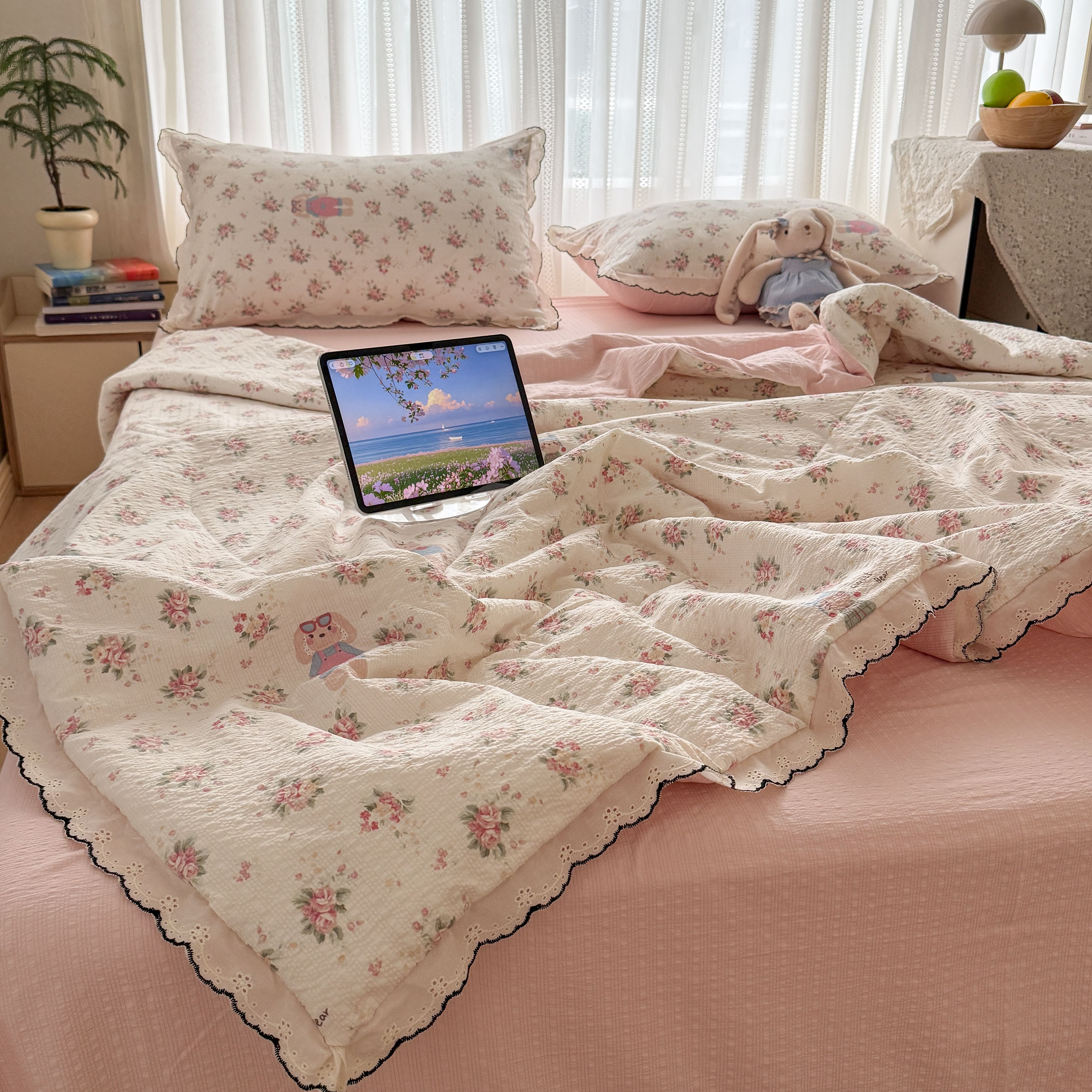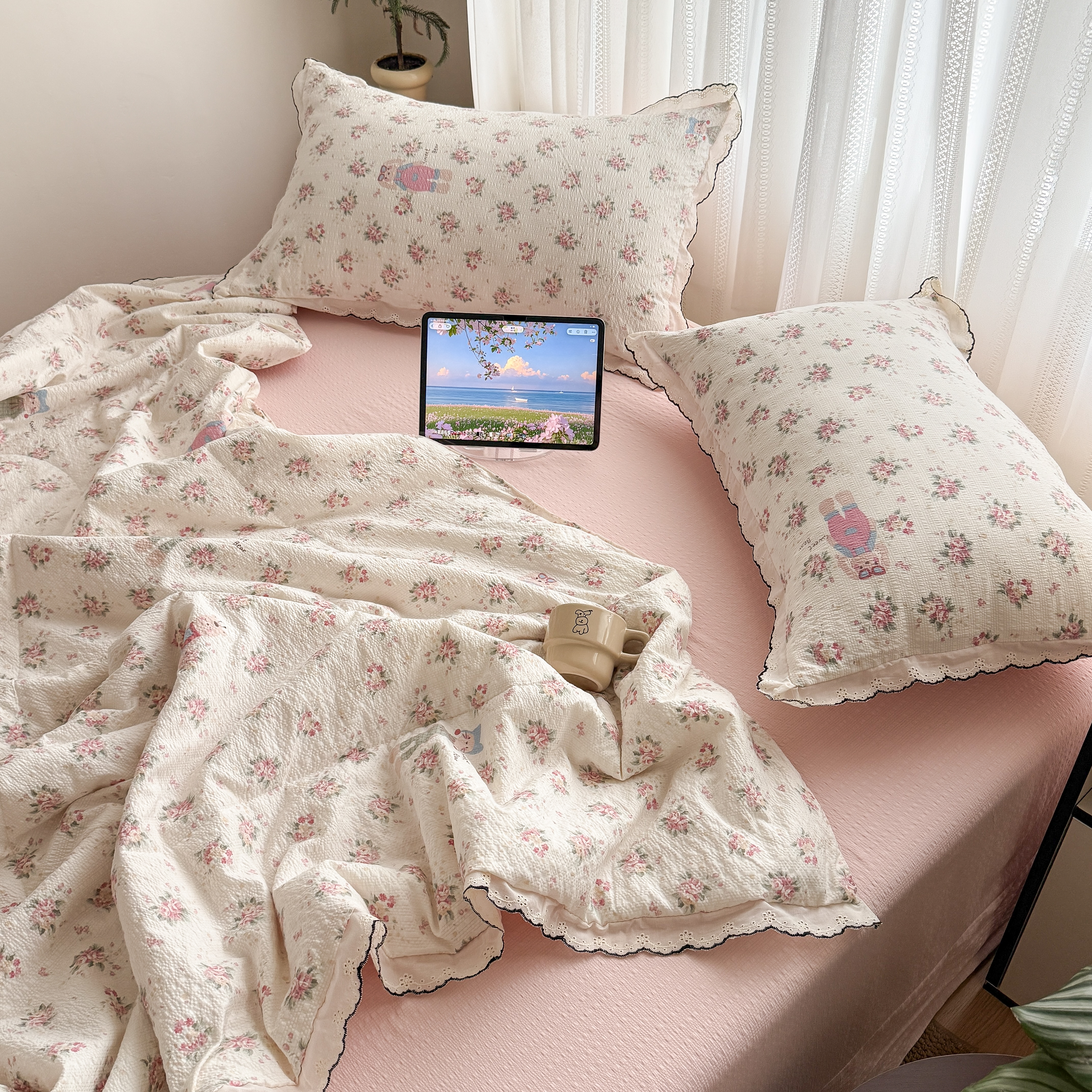 (总)欧尚 2026新款花边云感棉夏被床盖四件套,春辰绿,朵真,绯常,利莲,密朵,南朵,晴川木也