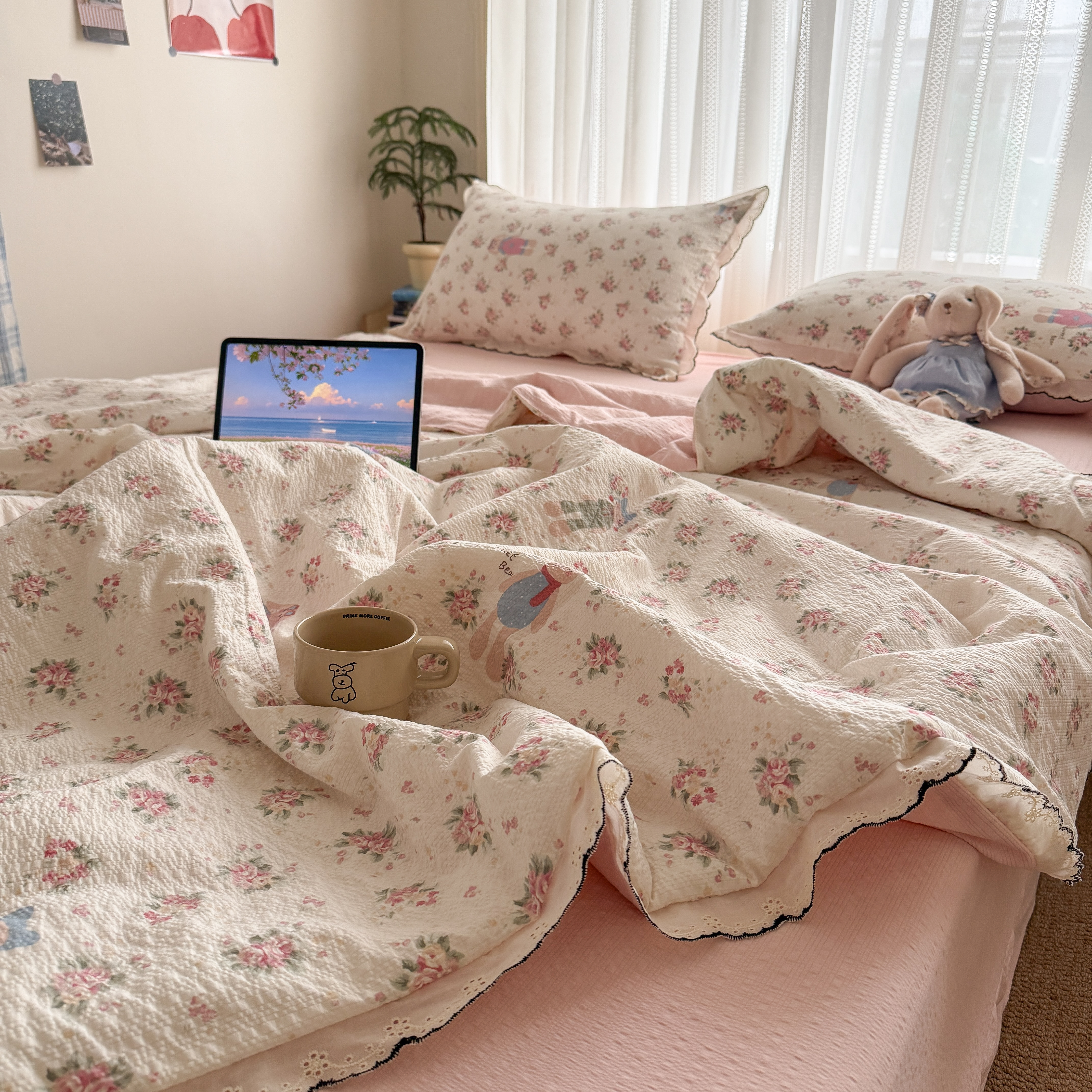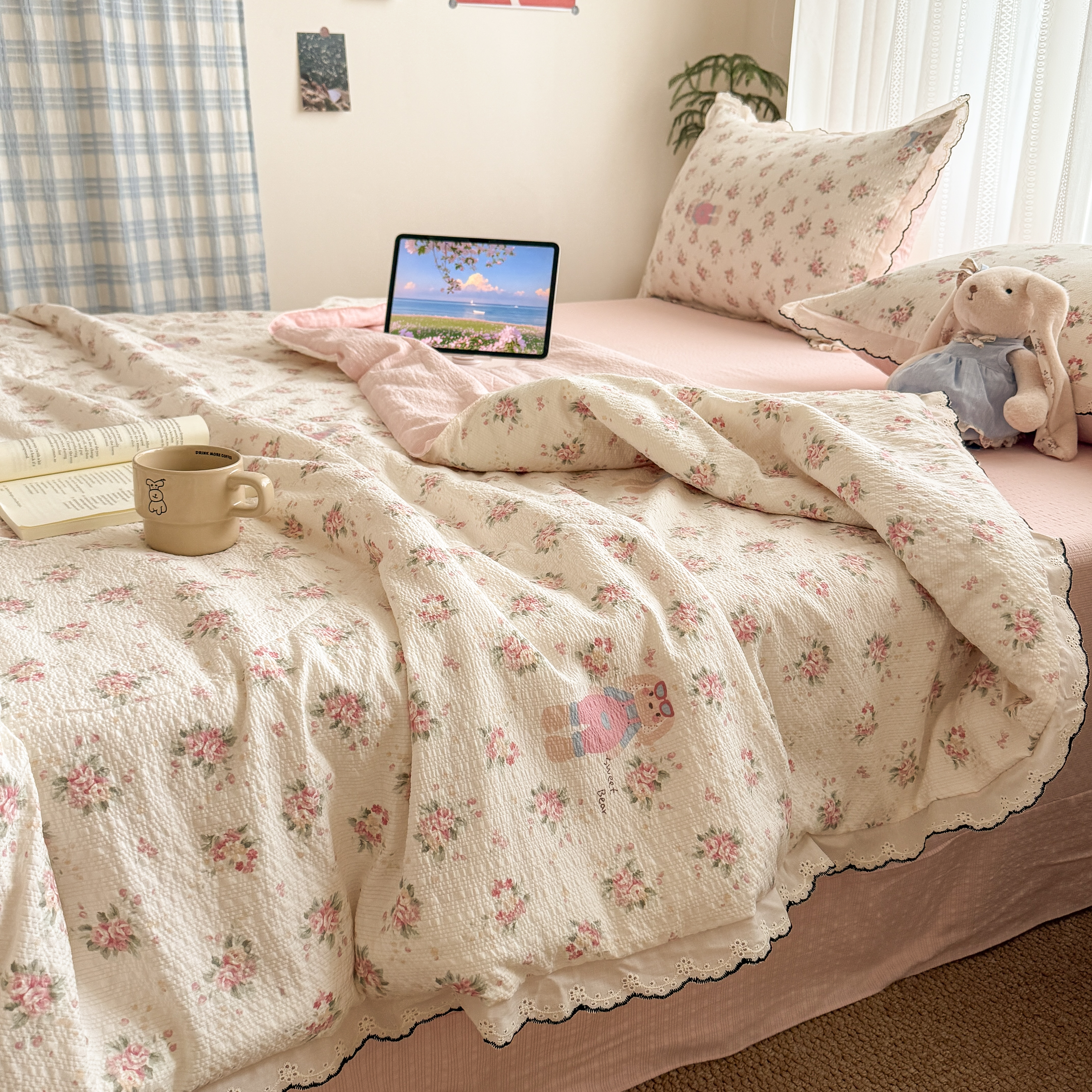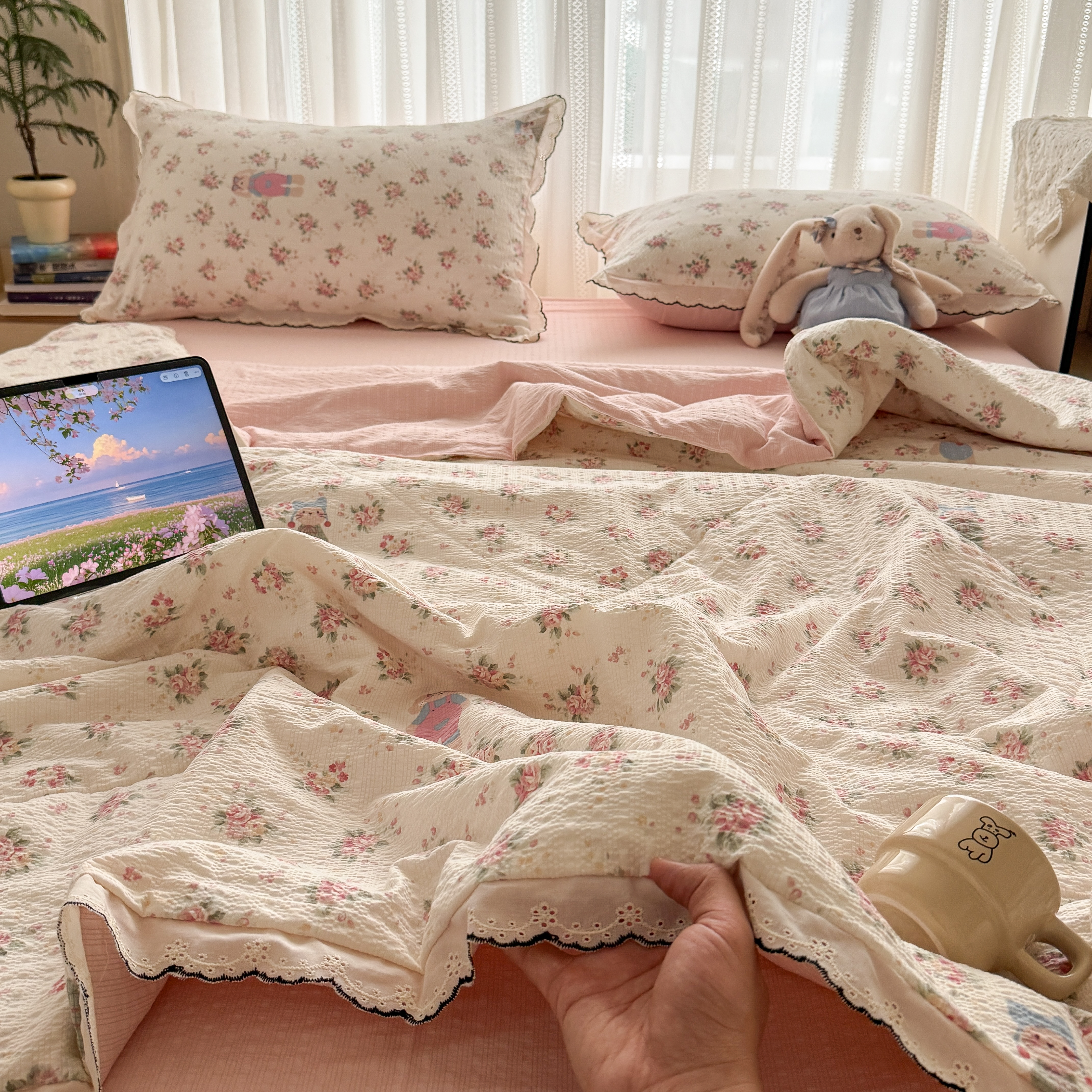 欧尚 2026新款蕾丝花边夏被款四件套 花丛萌兔