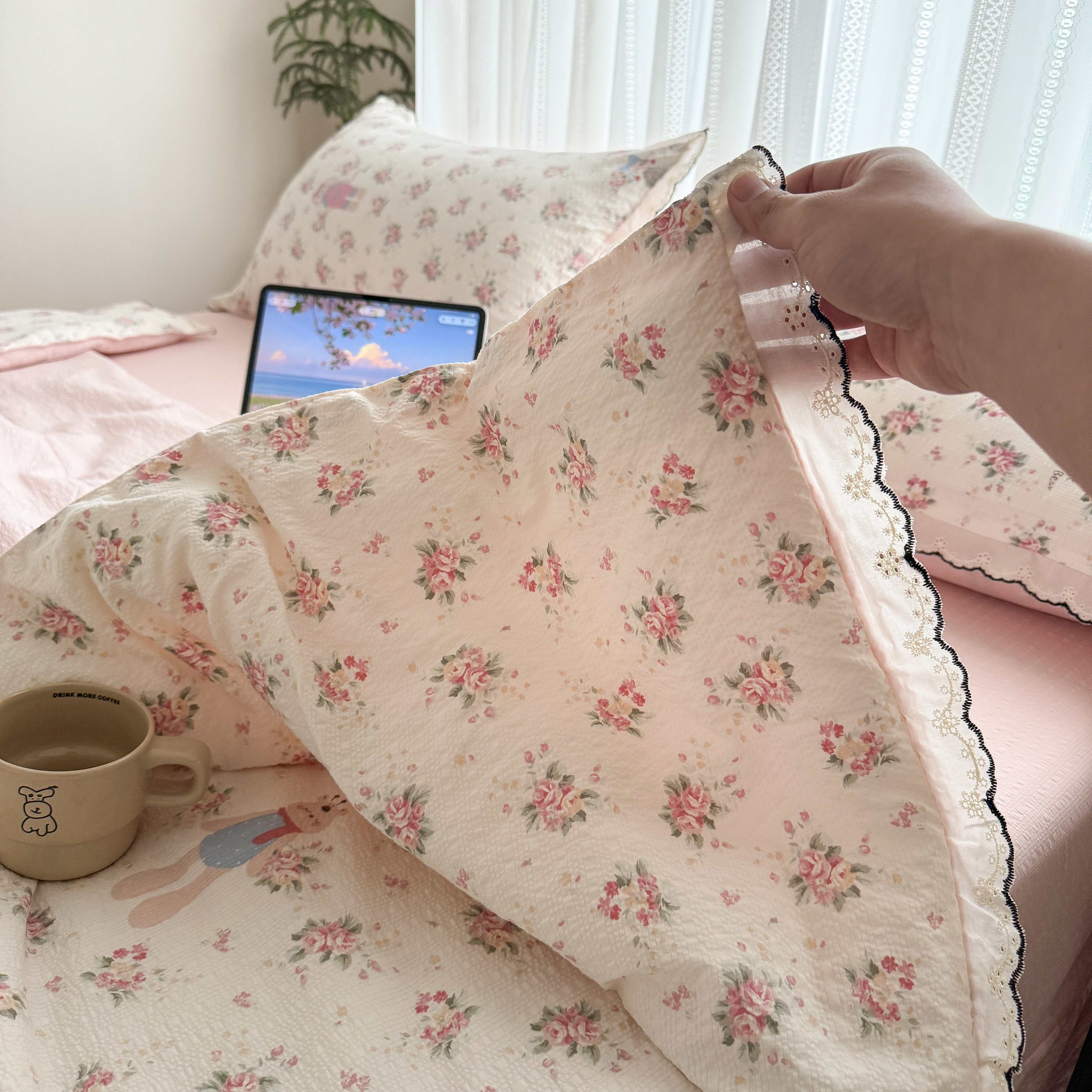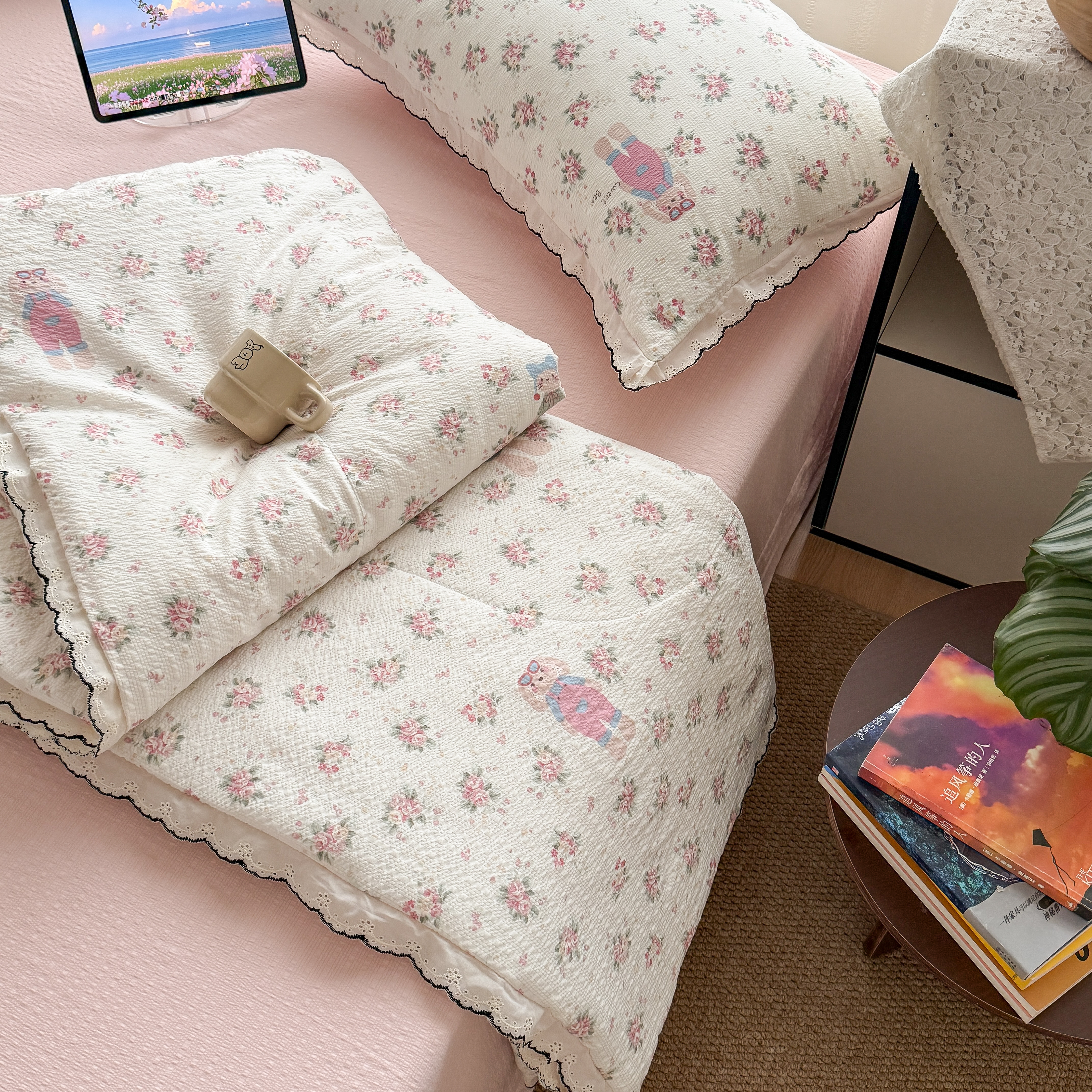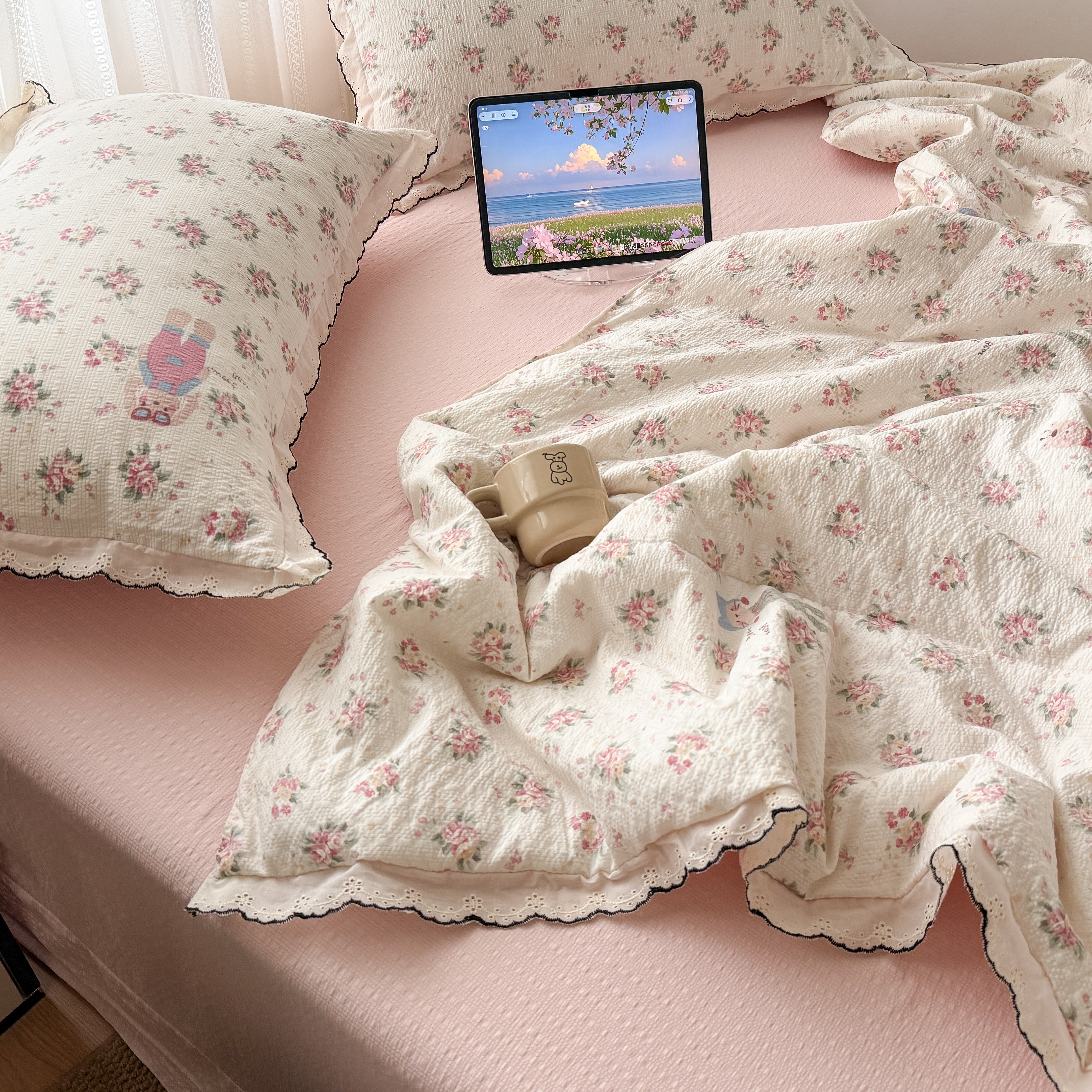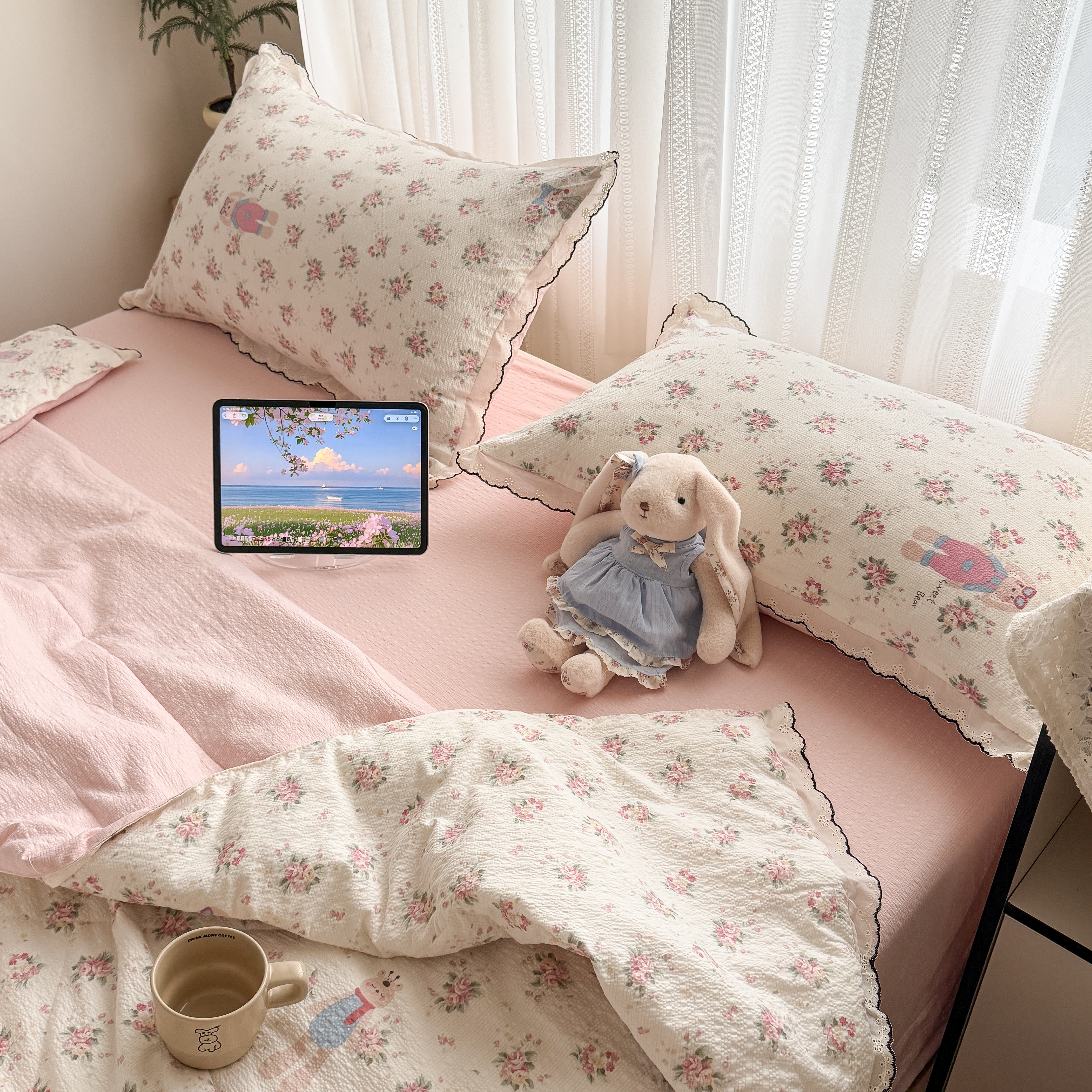 欧尚 2026新款蕾丝花边夏被款四件套 花丛萌兔