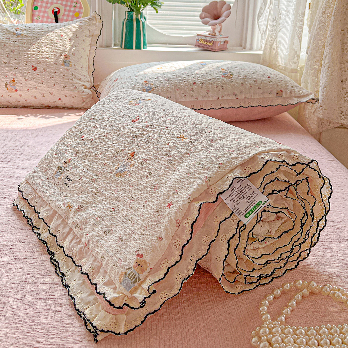 (总)仟网汇 2026新款云感木棉皱皱纱全棉花边款夏被四件套,豆蔻,百福兰,波点小兔粉,初恋,春天里,蝴蝶梦,花园兔,蜡笔画,莱茵河畔,兰黛,若欢-绿,山野栀子,素颜,太妃糖,兔小姐,微凉薄荷,小黑兔,心动,郁金香小兔粉,遇见,芝士奶酪,紫爱心,紫苏,小美满,包装,初心黄,粉豹纹,格子樱桃,焦糖小马,山茶花,小南瓜,星星人