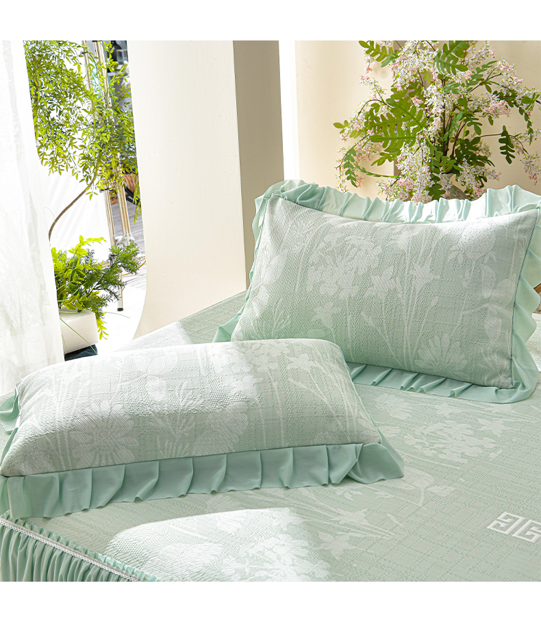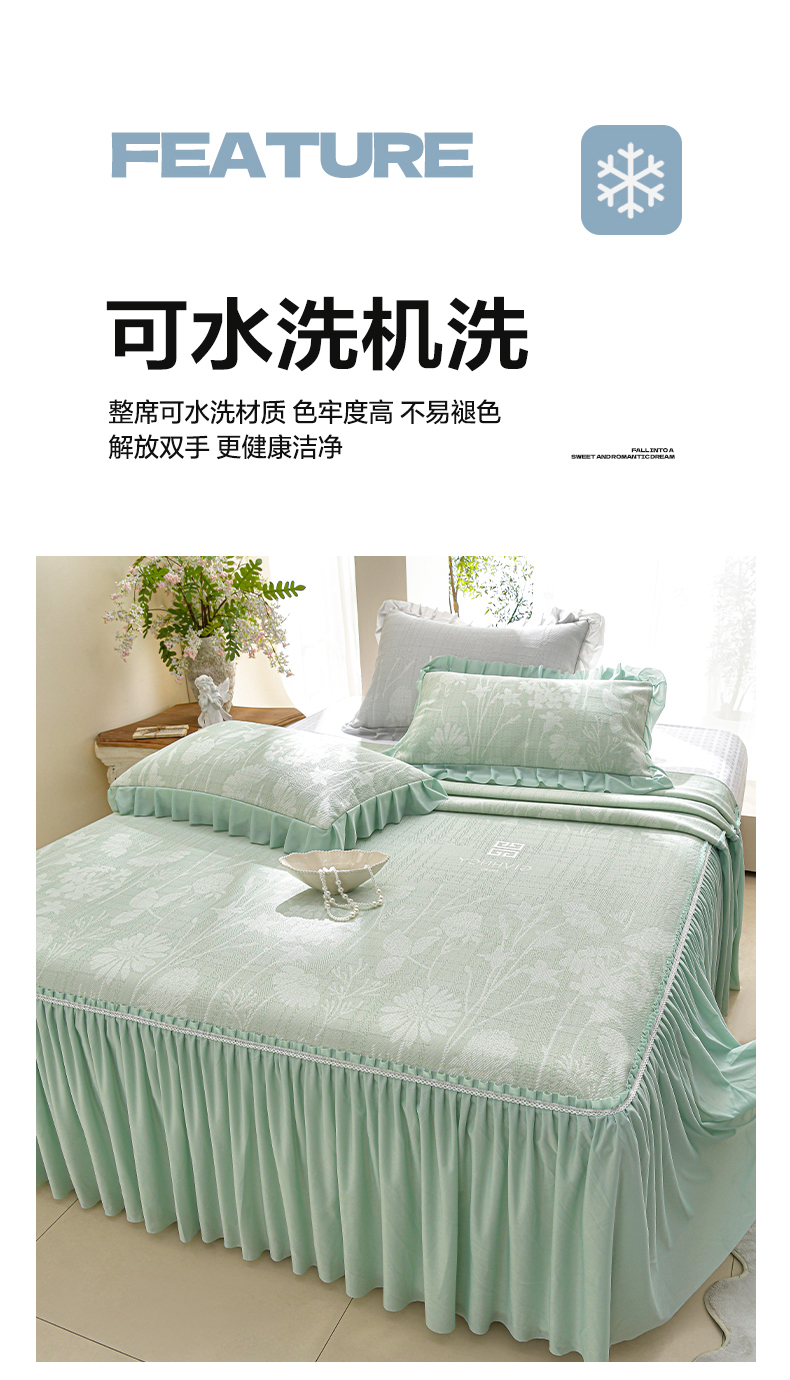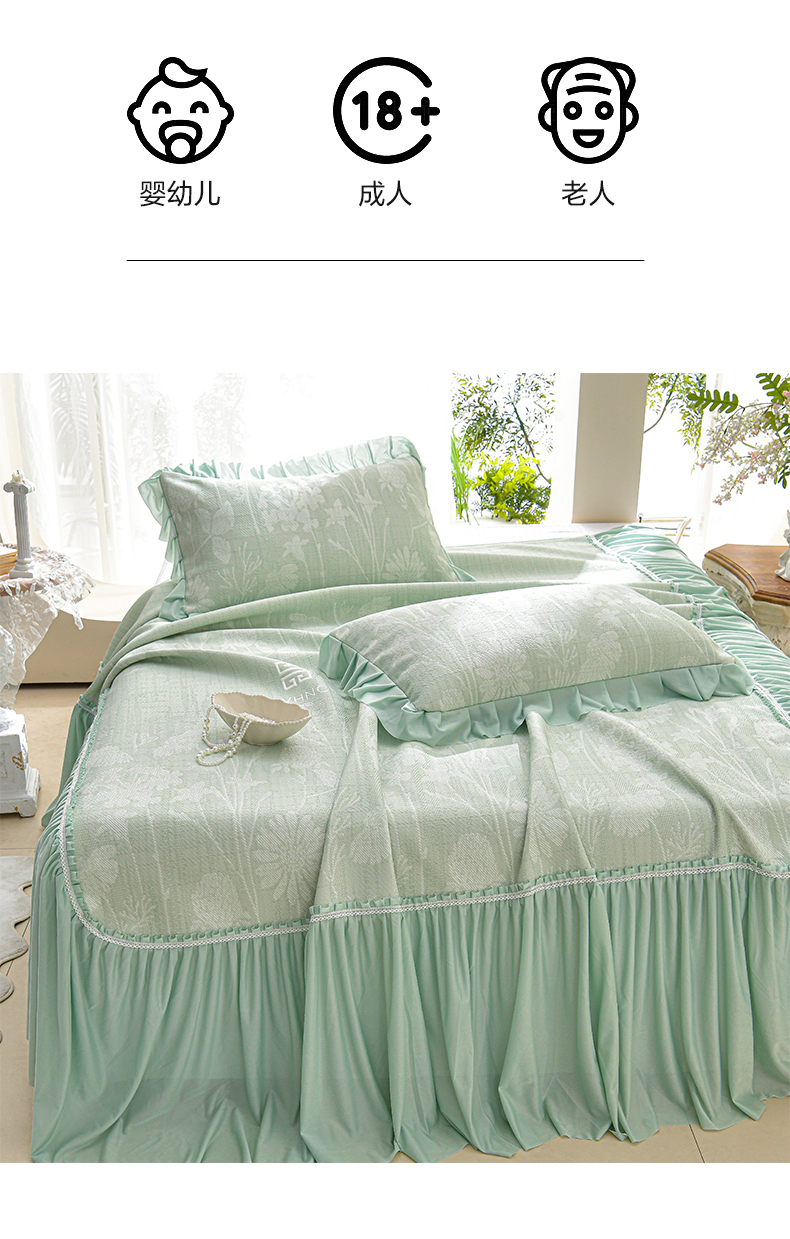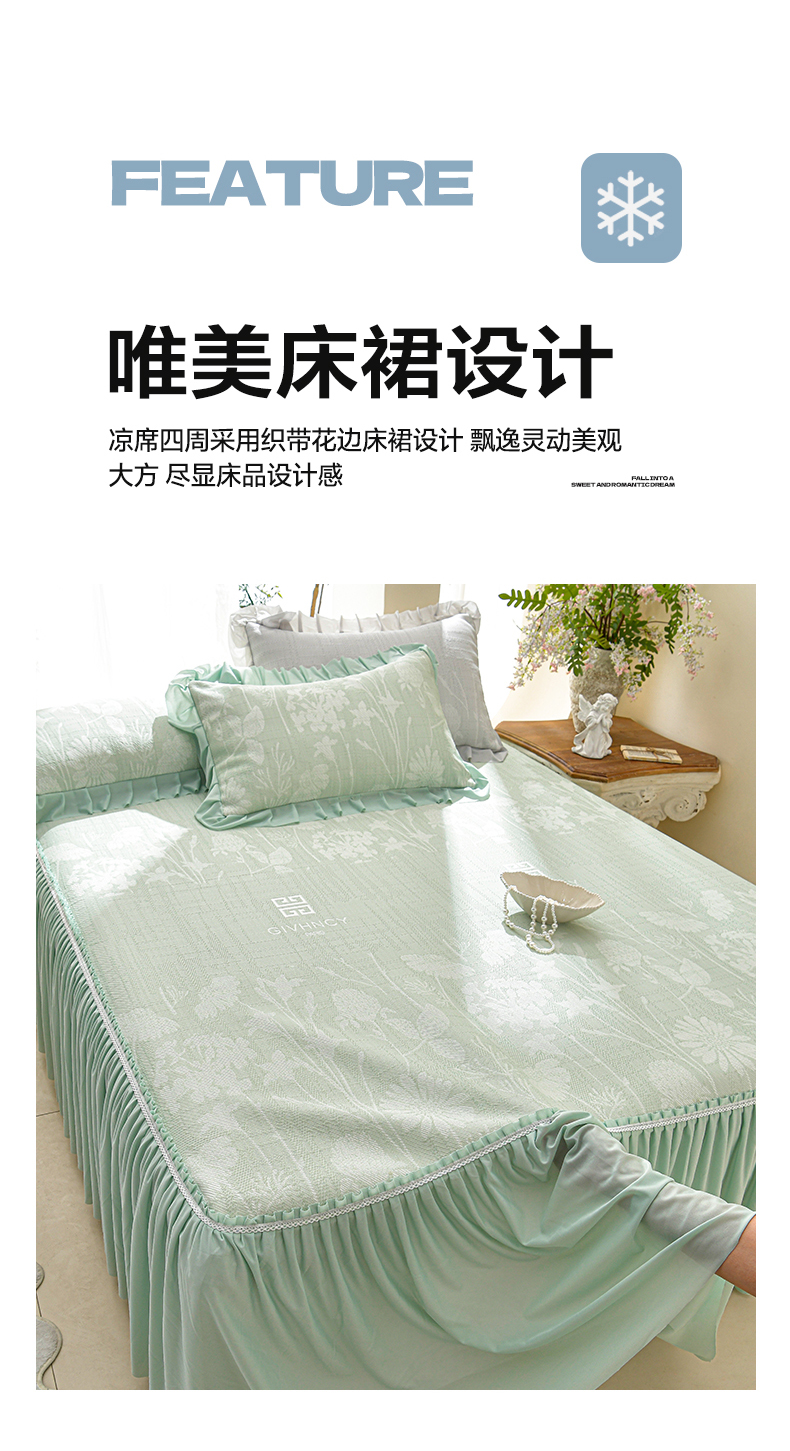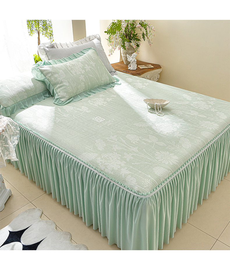 绘萱家居 2026新款PE提花冰凉豆豆床裙款凉席席子凉席 春语佳人-绿