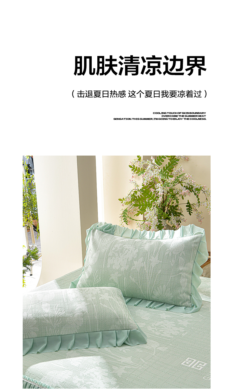 商品名称:绘萱家居 2026新款PE提花冰凉豆豆床裙款凉席席子凉席 春语佳人-绿