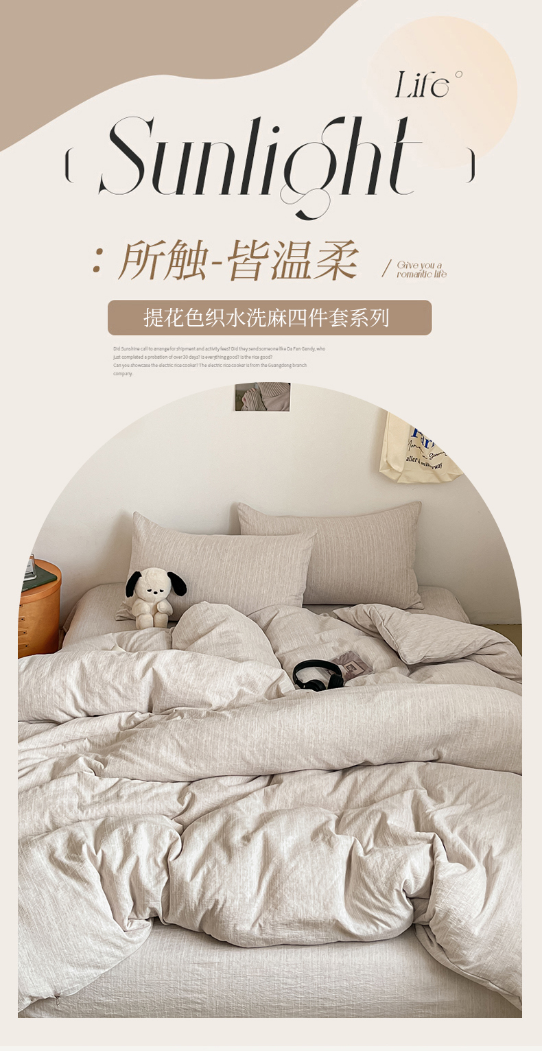 当前位置: 91家纺网 > 商品网购 > 床品套件 > 四件套 > 棉麻四件套 > 蓝极人 2026新款色织水洗麻纯色四件套 烟茶