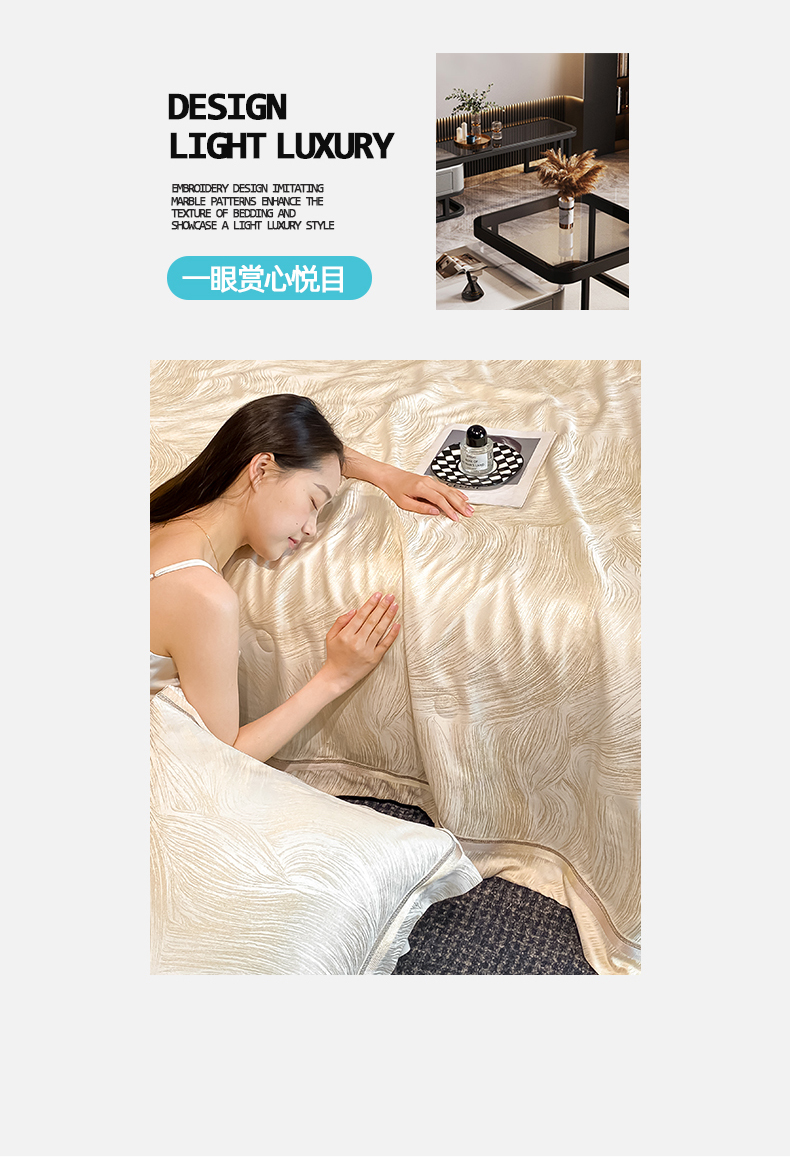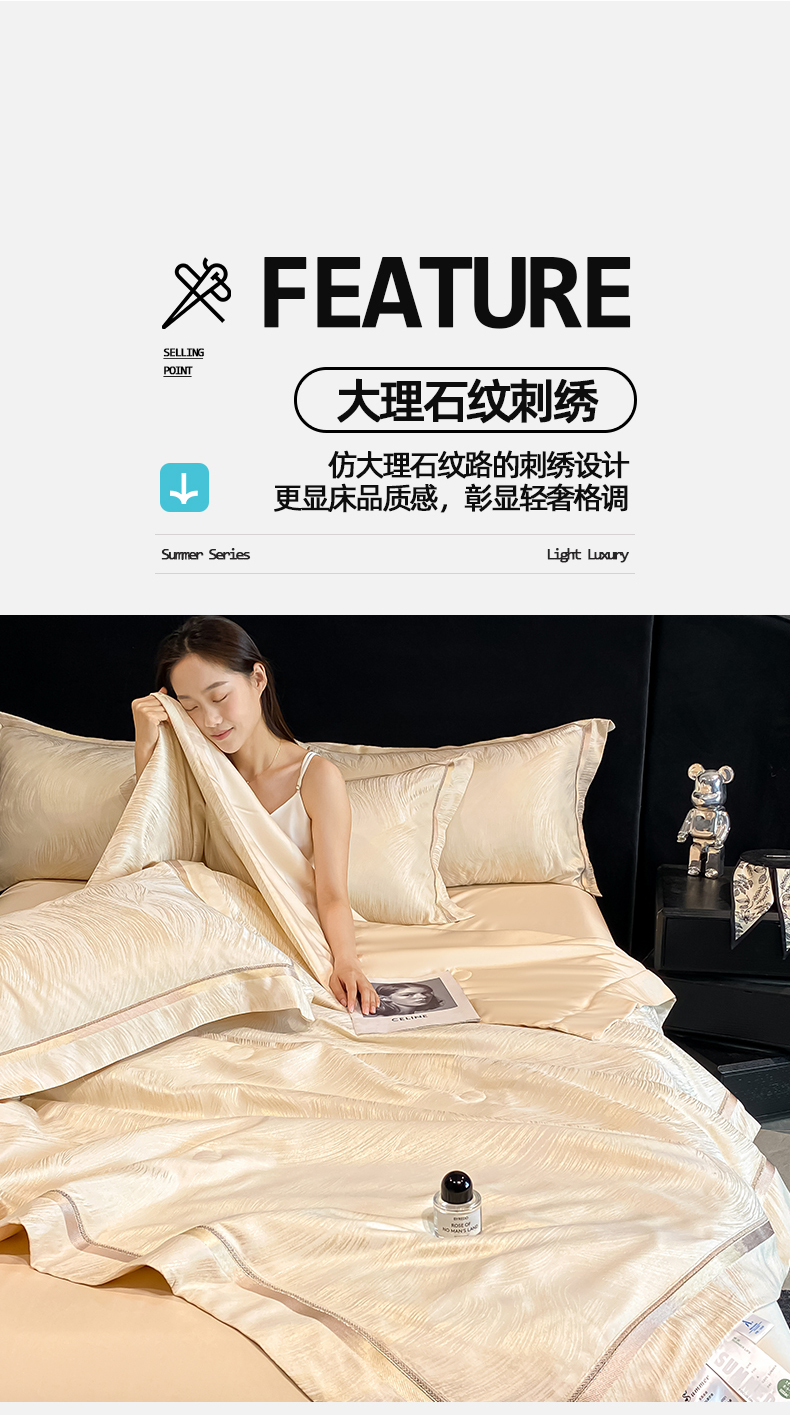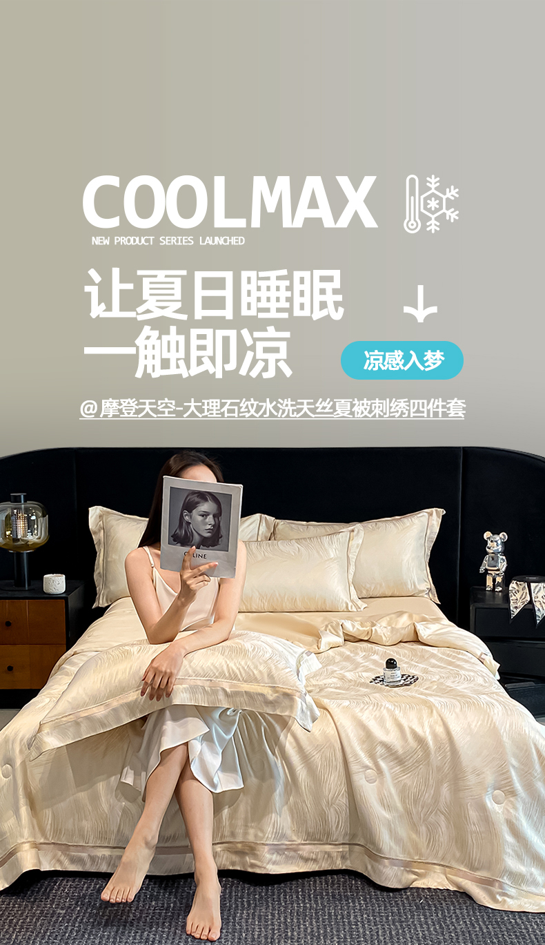 当前位置: 91家纺网 > 商品网购 > 床品套件 > 四件套 > 夏被四件套 > 置顶家纺 2026新款摩登天空-大理石纹水洗天丝夏被夏凉被空调被刺绣四件套 摩登天空-浅香槟