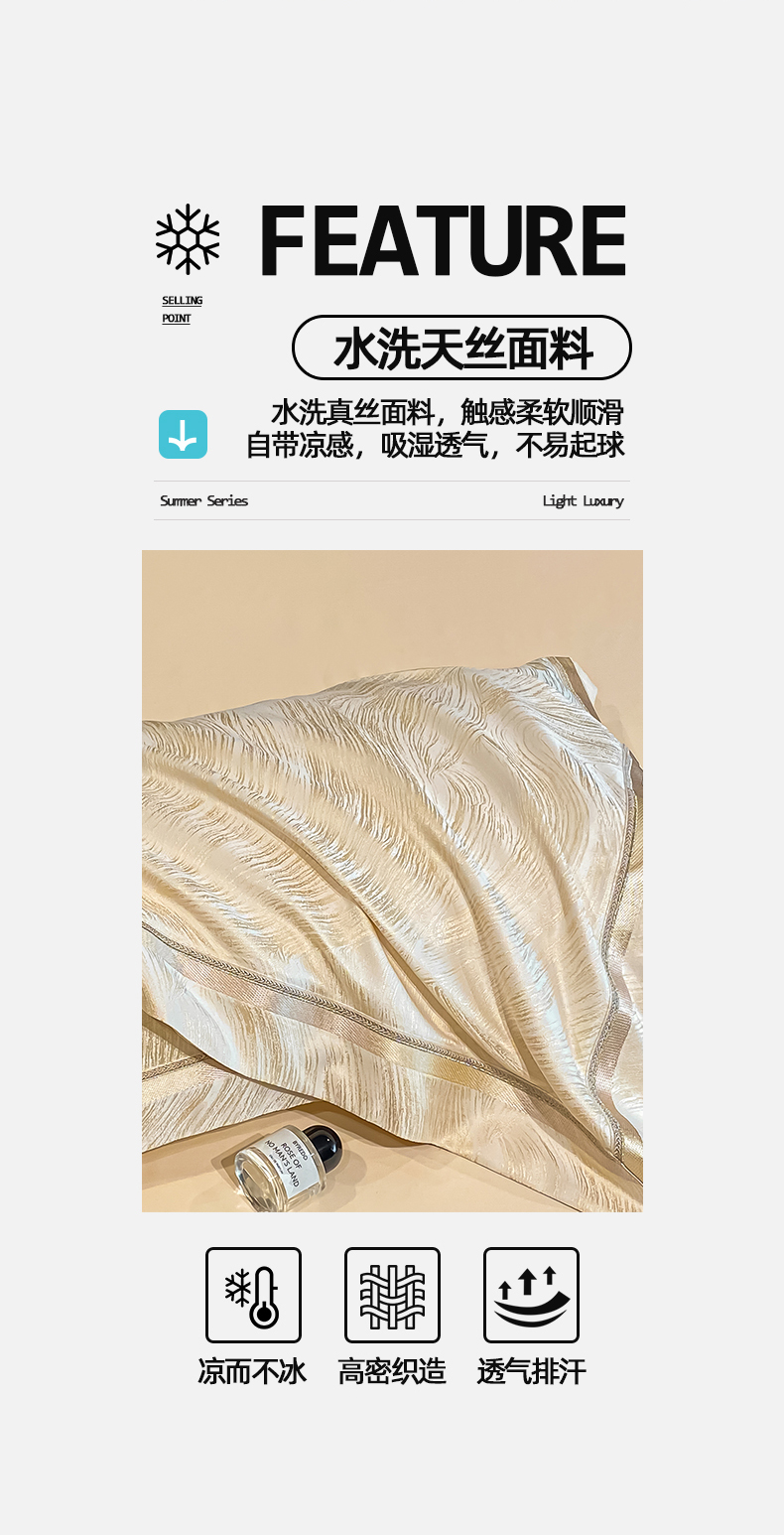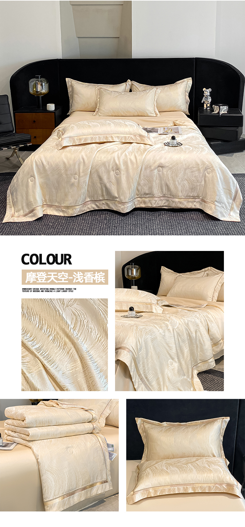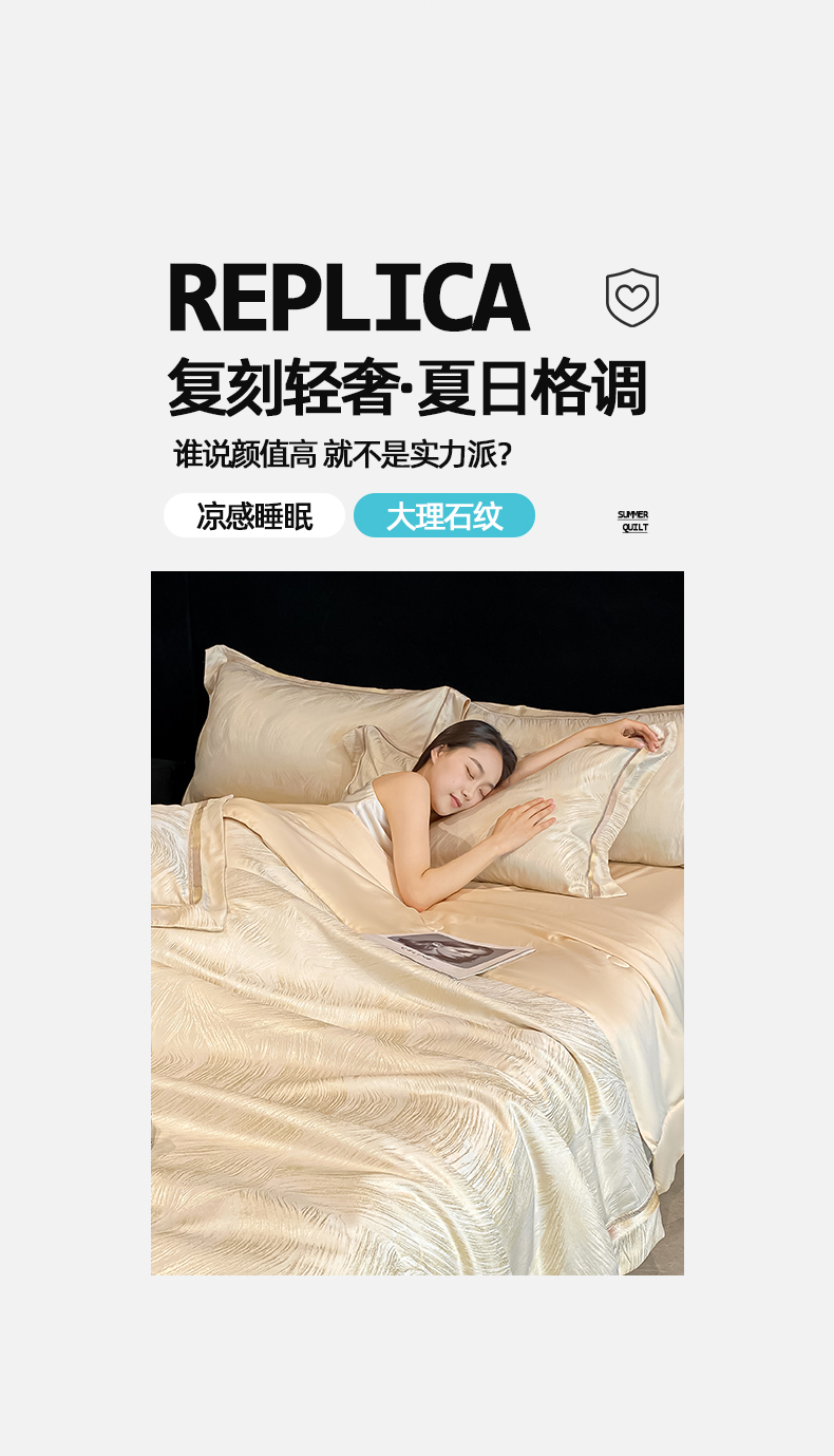 当前位置: 91家纺网 > 商品网购 > 床品套件 > 四件套 > 夏被四件套 > 置顶家纺 2026新款摩登天空-大理石纹水洗天丝夏被夏凉被空调被刺绣四件套 摩登天空-浅香槟