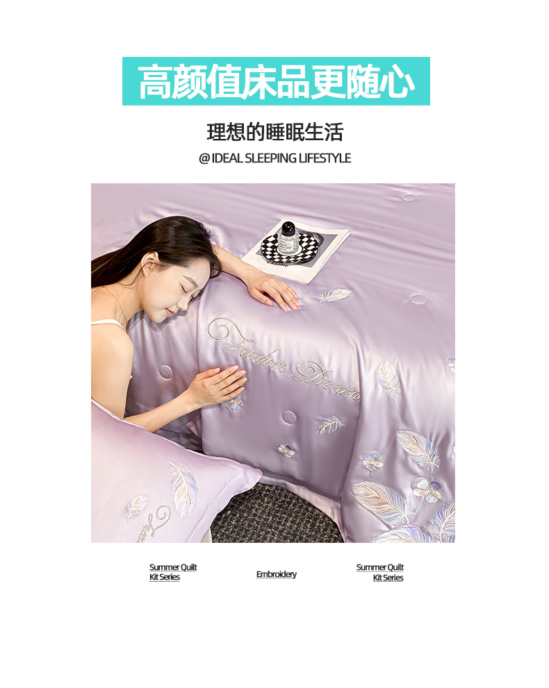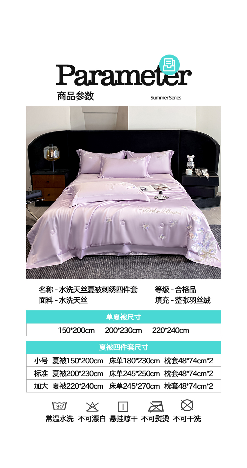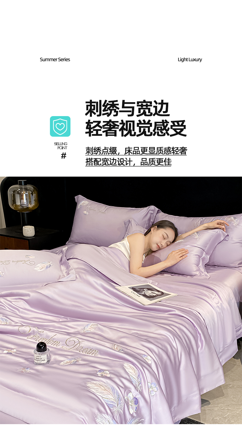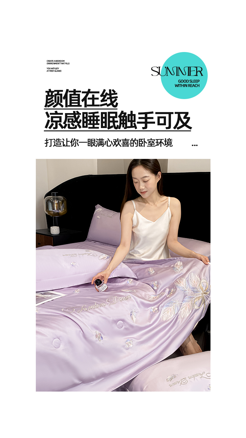 当前位置: 91家纺网 > 商品网购 > 床品套件 > 四件套 > 夏被四件套 > 置顶家纺 2026新款星羽-水洗天丝夏被刺绣樱桃夏凉被空调被刺绣四件套 星羽-香芋紫
