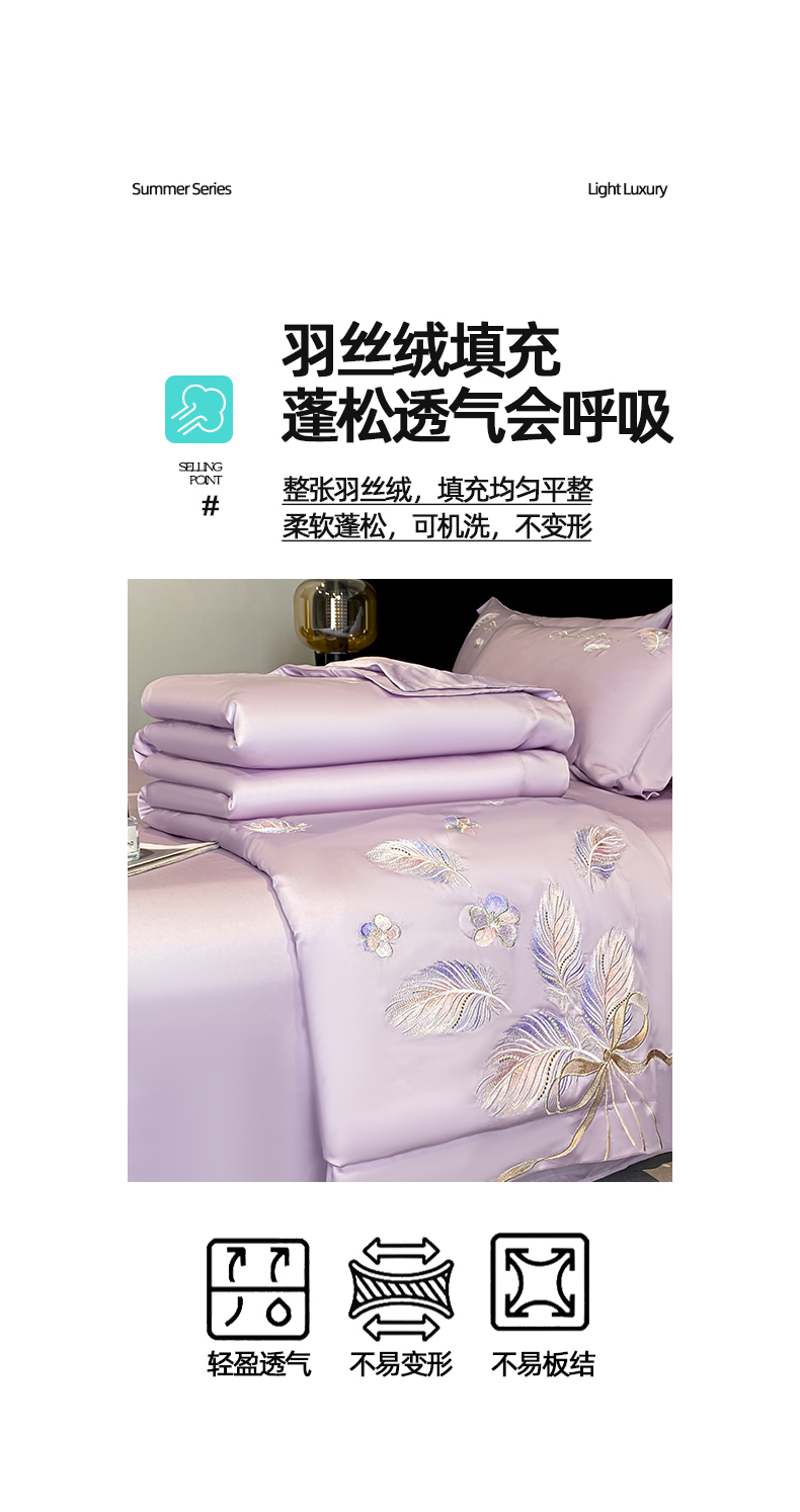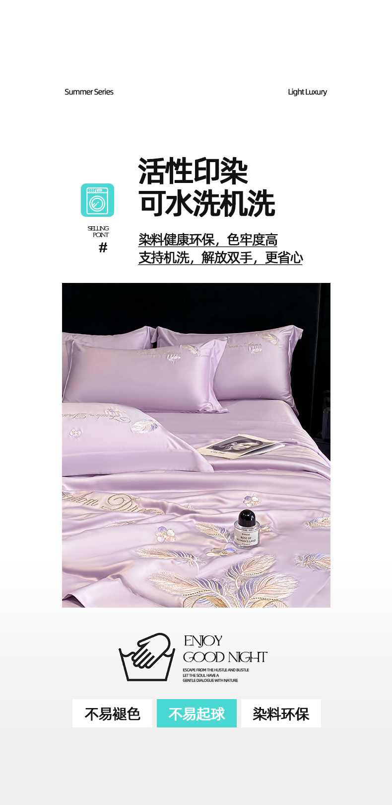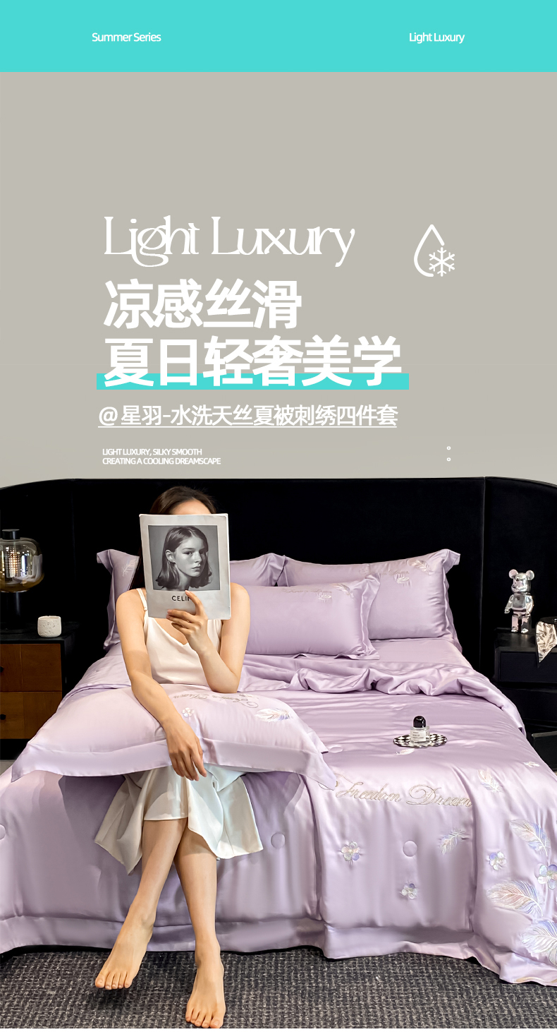 当前位置: 91家纺网 > 商品网购 > 床品套件 > 四件套 > 夏被四件套 > 置顶家纺 2026新款星羽-水洗天丝夏被刺绣樱桃夏凉被空调被刺绣四件套 星羽-香芋紫