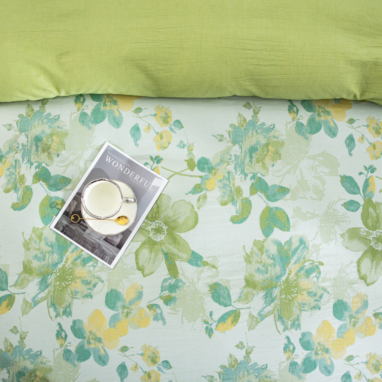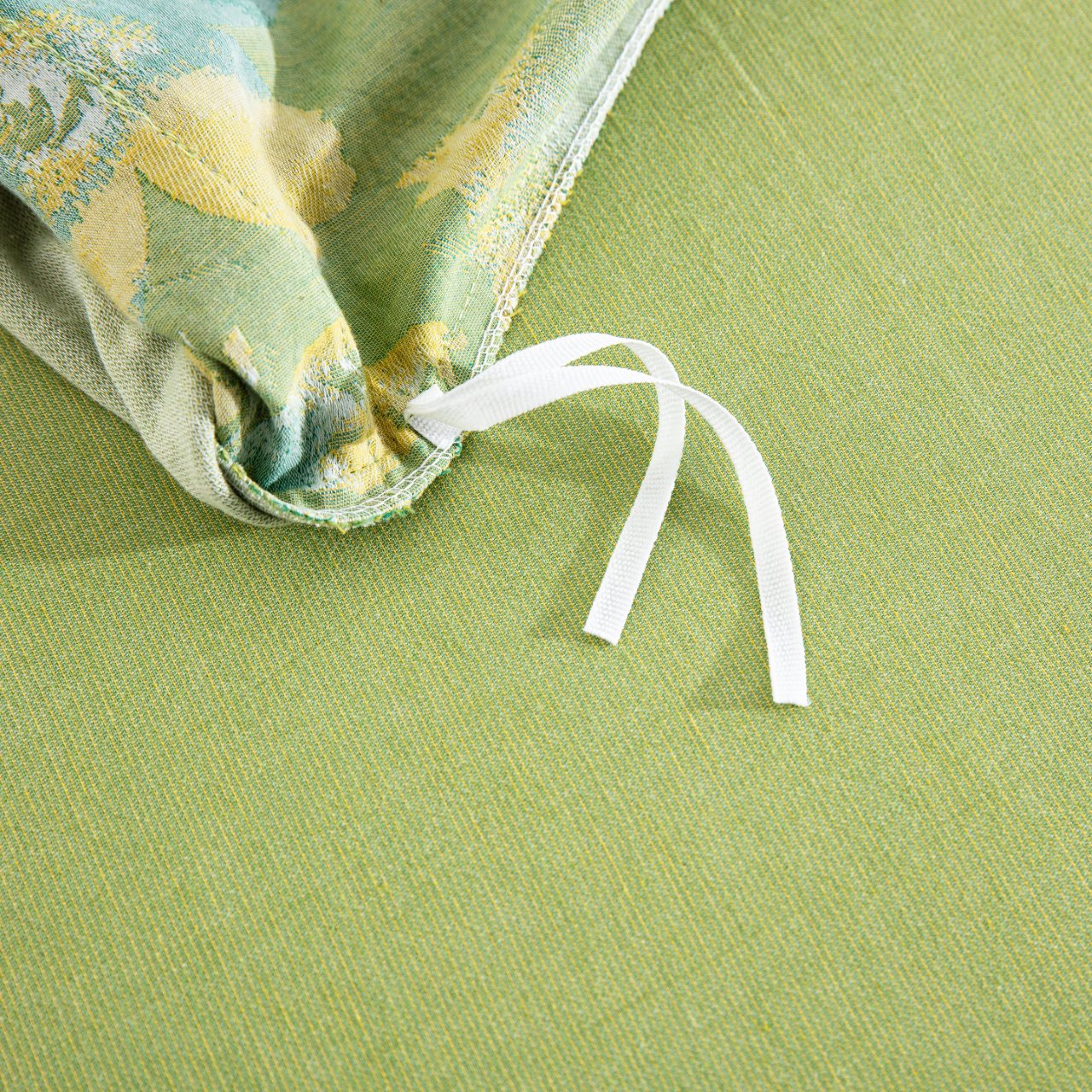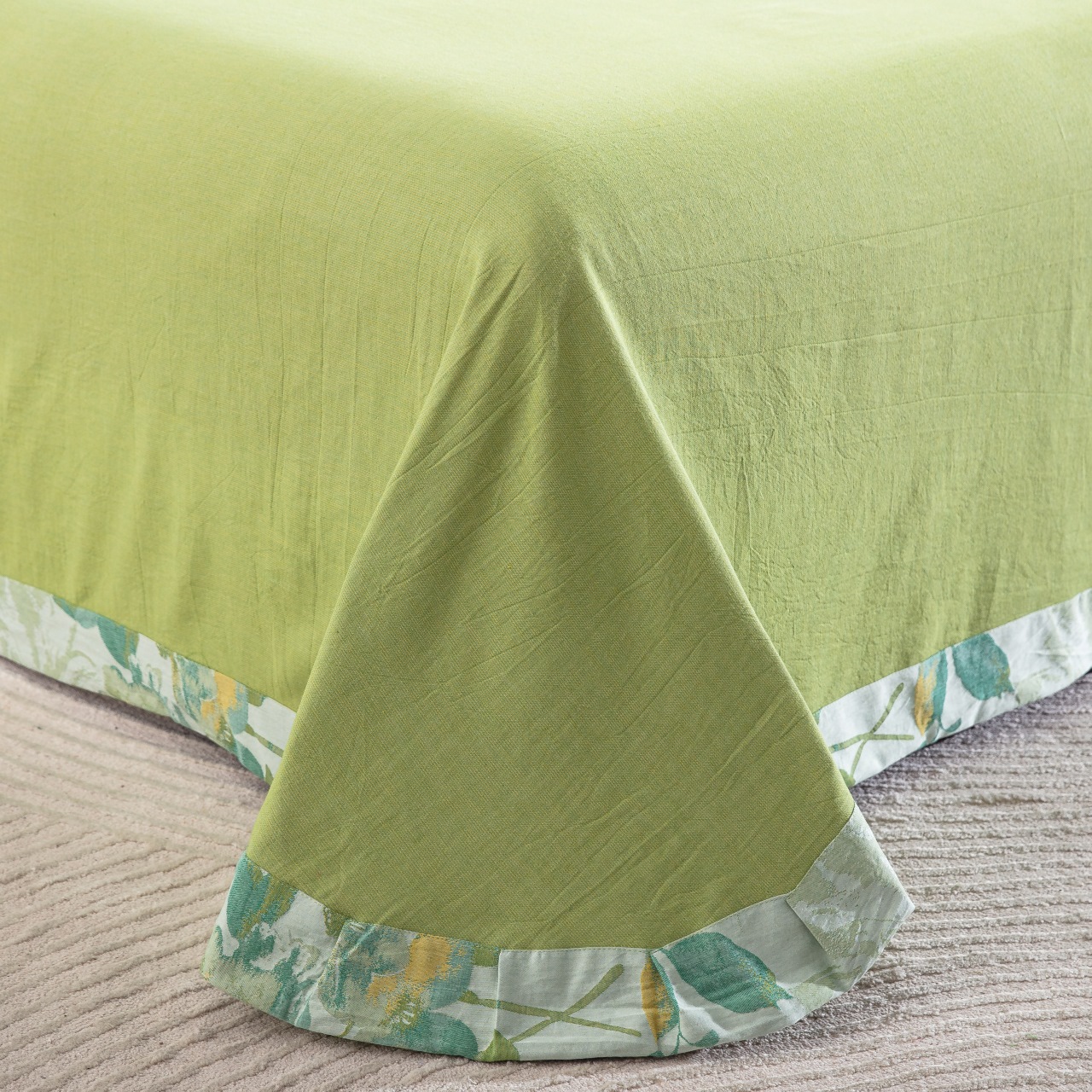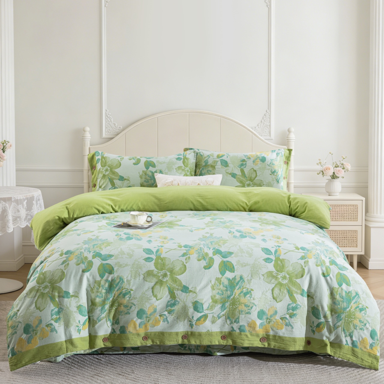 商品名称:仰望棉麻双层纱供应链 2026新款念奴娇全棉纯棉色织提花纽扣款四件套 念奴娇-绿色