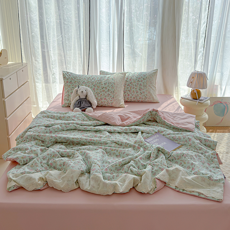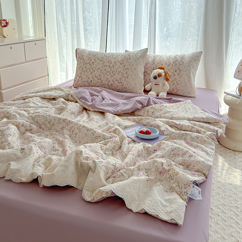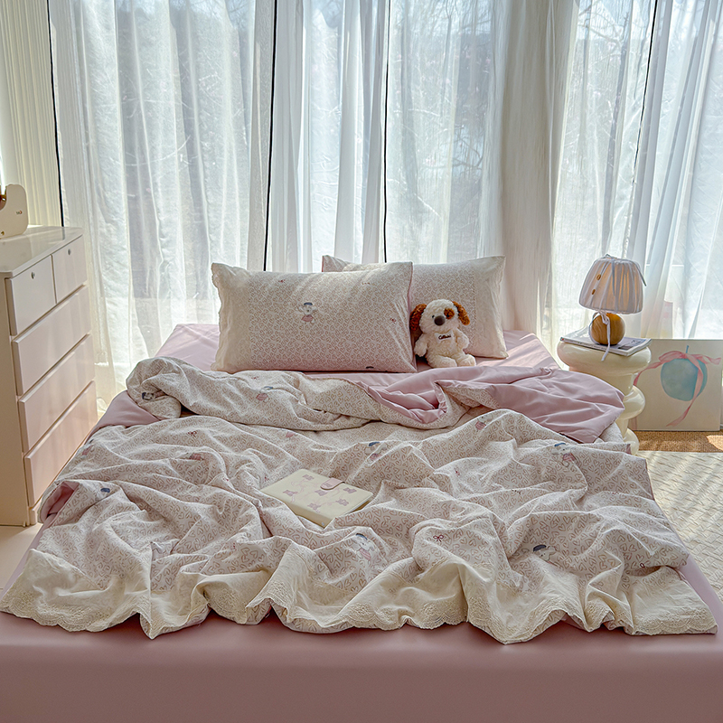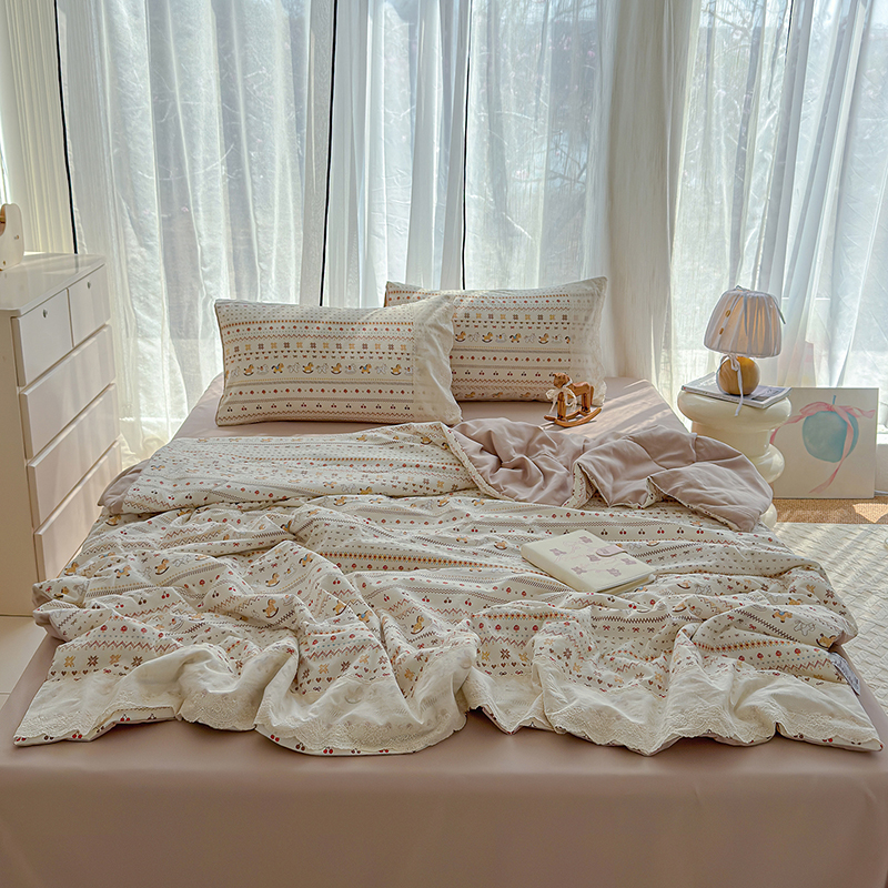铺尚美家纺 2026春夏新款古法水洗云感棉夏被四件套全棉花边印花夏凉被空调被 素羽