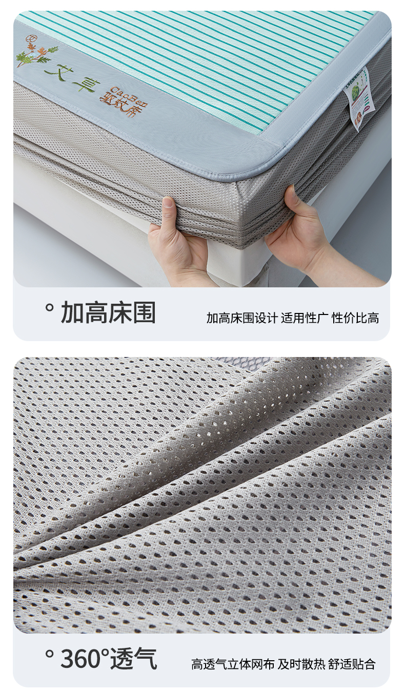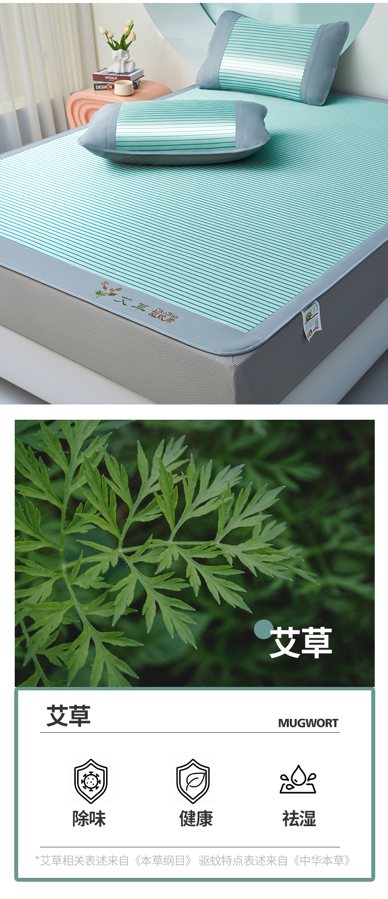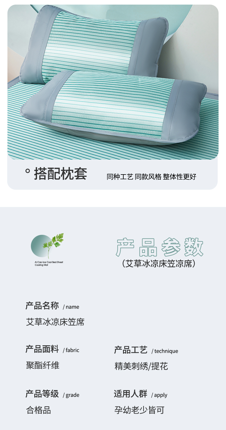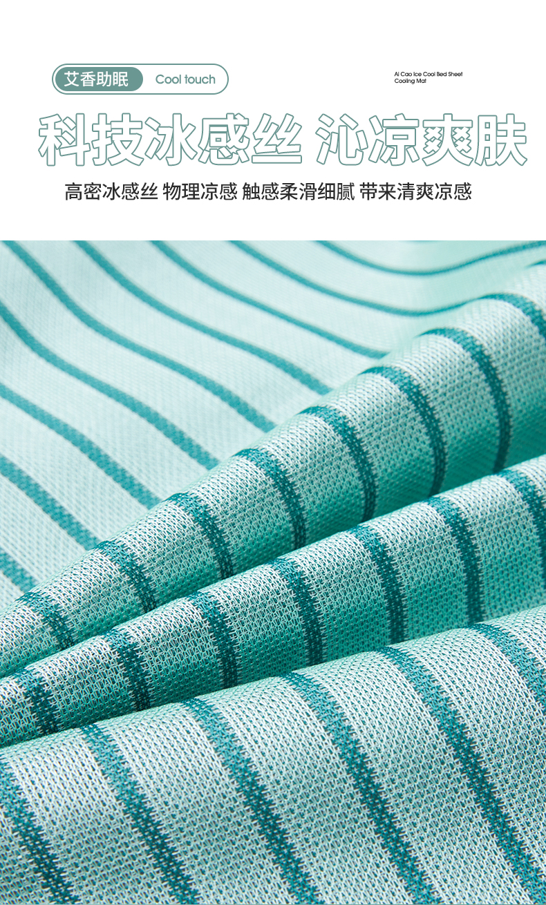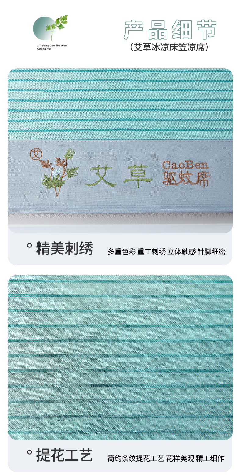 • 91家纺网 家纺一手货源 找家纺 航途席业 2026新款刺绣可水洗碳光冰丝席宽包边无纺布冰丝席艾香系列 艾香条纹床笠款薄荷绿