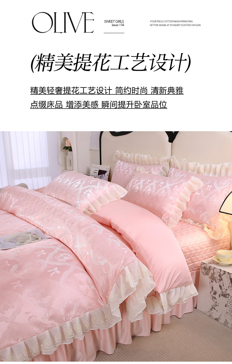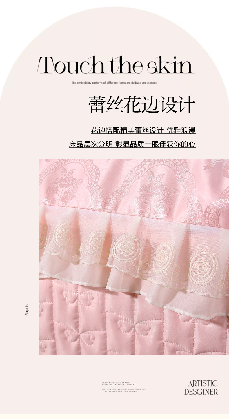 当前位置: 91家纺网 > 商品网购 > 床品套件 > 四件套 > 其它四件套 > 提花大世界 2026新款轻奢法式蕾丝花边款丝滑水洗真丝天丝提花床单床笠床盖四件套 蝴蝶绮梦-奶霜白