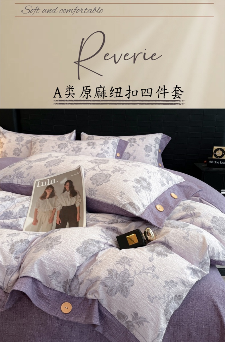 当前位置: 91家纺网 > 商品网购 > 床品套件 > 四件套 > 其它四件套 > 梦舒羽 2026春夏新款A类原麻纽扣四件套加厚被套床单宿舍双人床仿亚麻套件-最新款 南笙