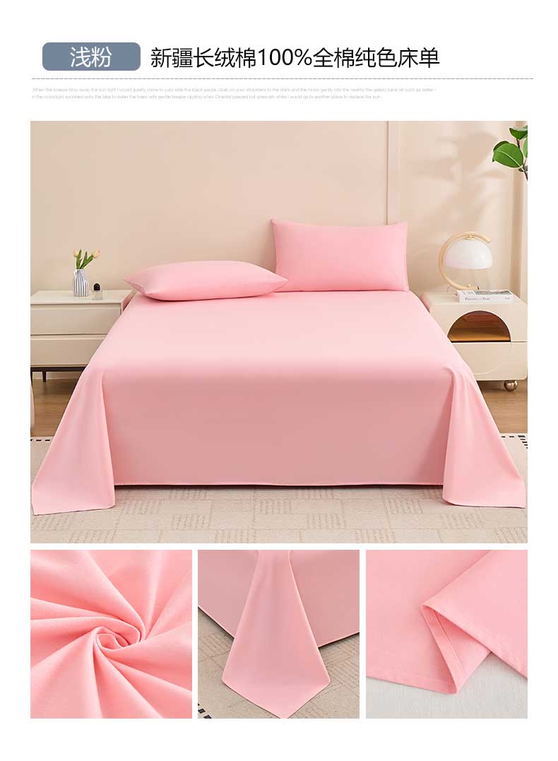 (总)居美良品 2026新款新疆长绒棉100%全棉纯色A类纯棉床单,淡玉,米白,抹茶绿,浅粉,天蓝,叠拍组合图仅展示
