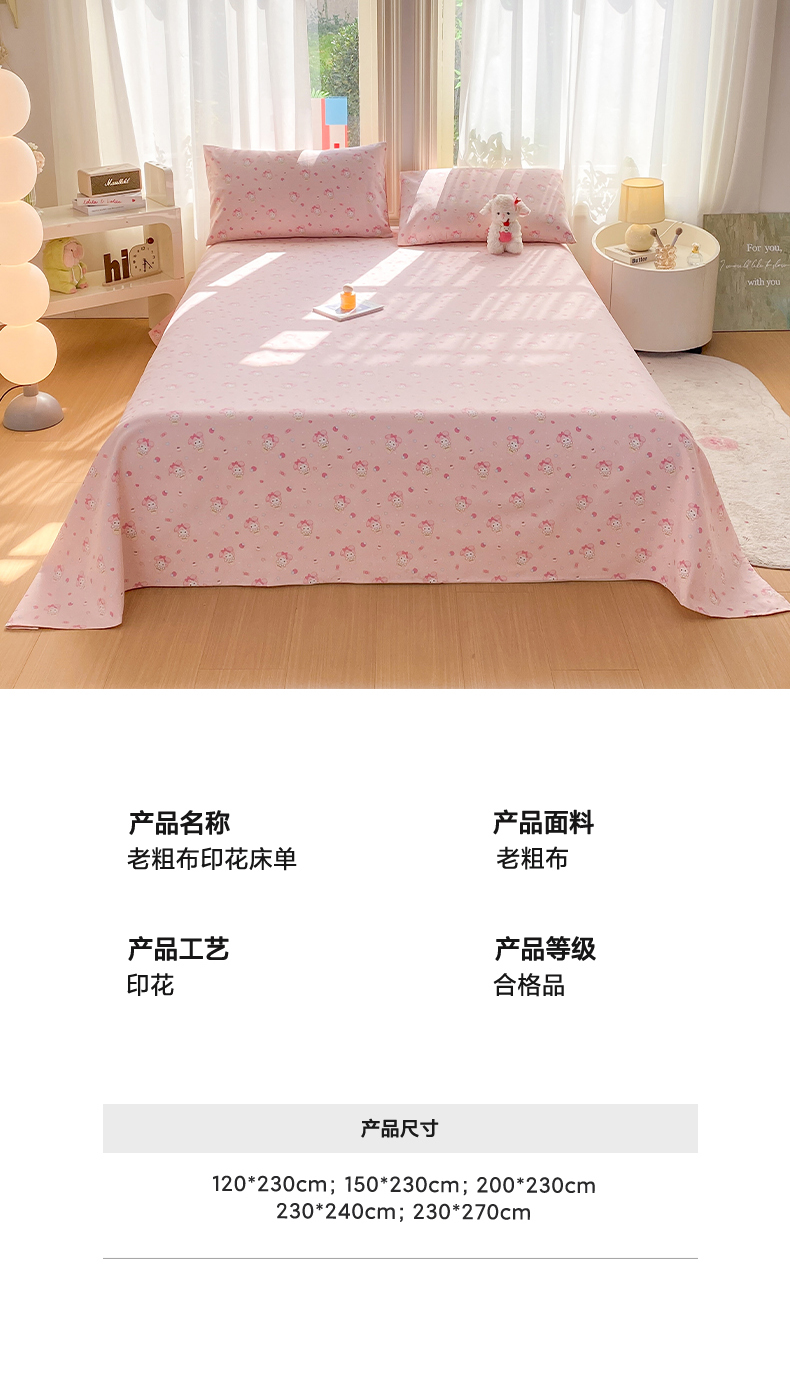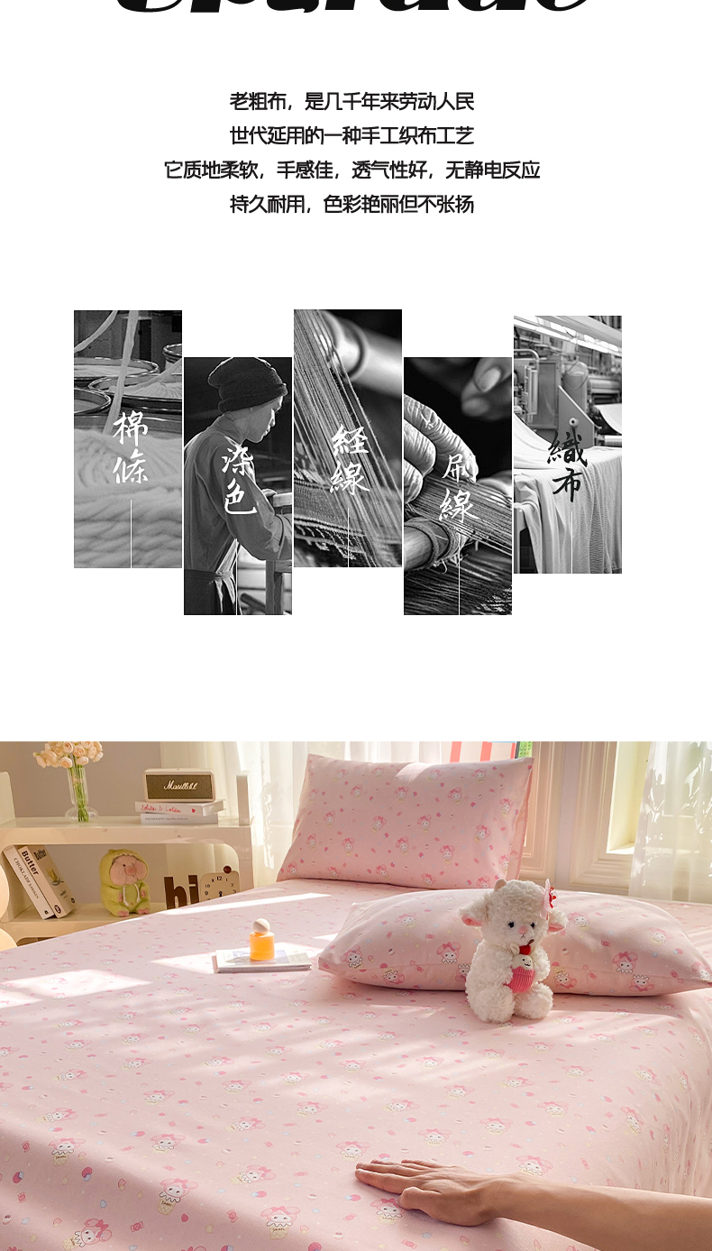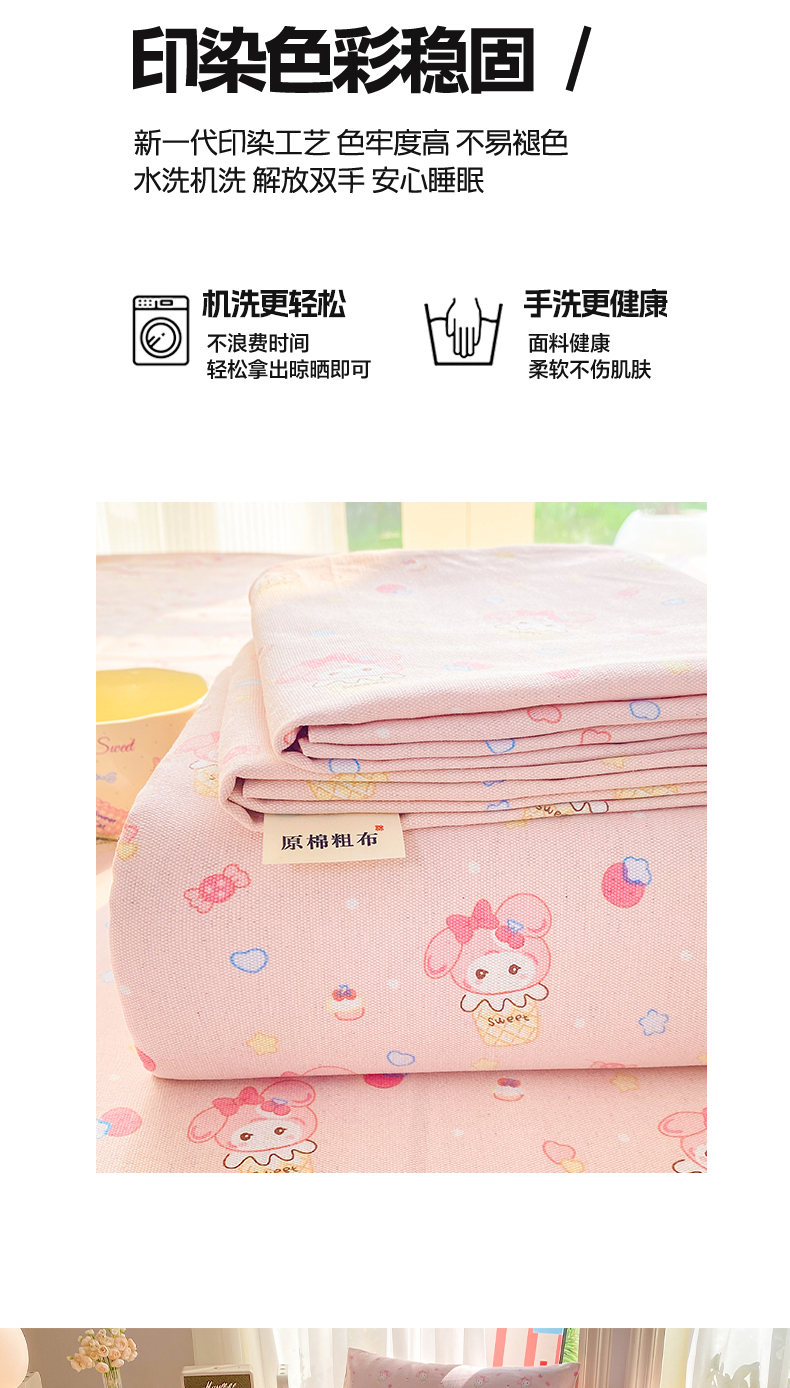• 91家纺网 家纺一手货源 找家纺 晓时候 20226新款细纱原棉老粗布床单印花床单单件凉席三件套 小美冰激凌