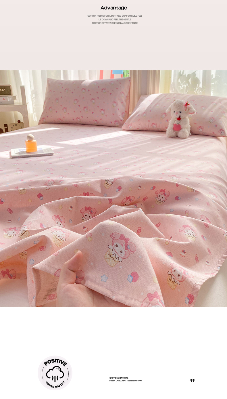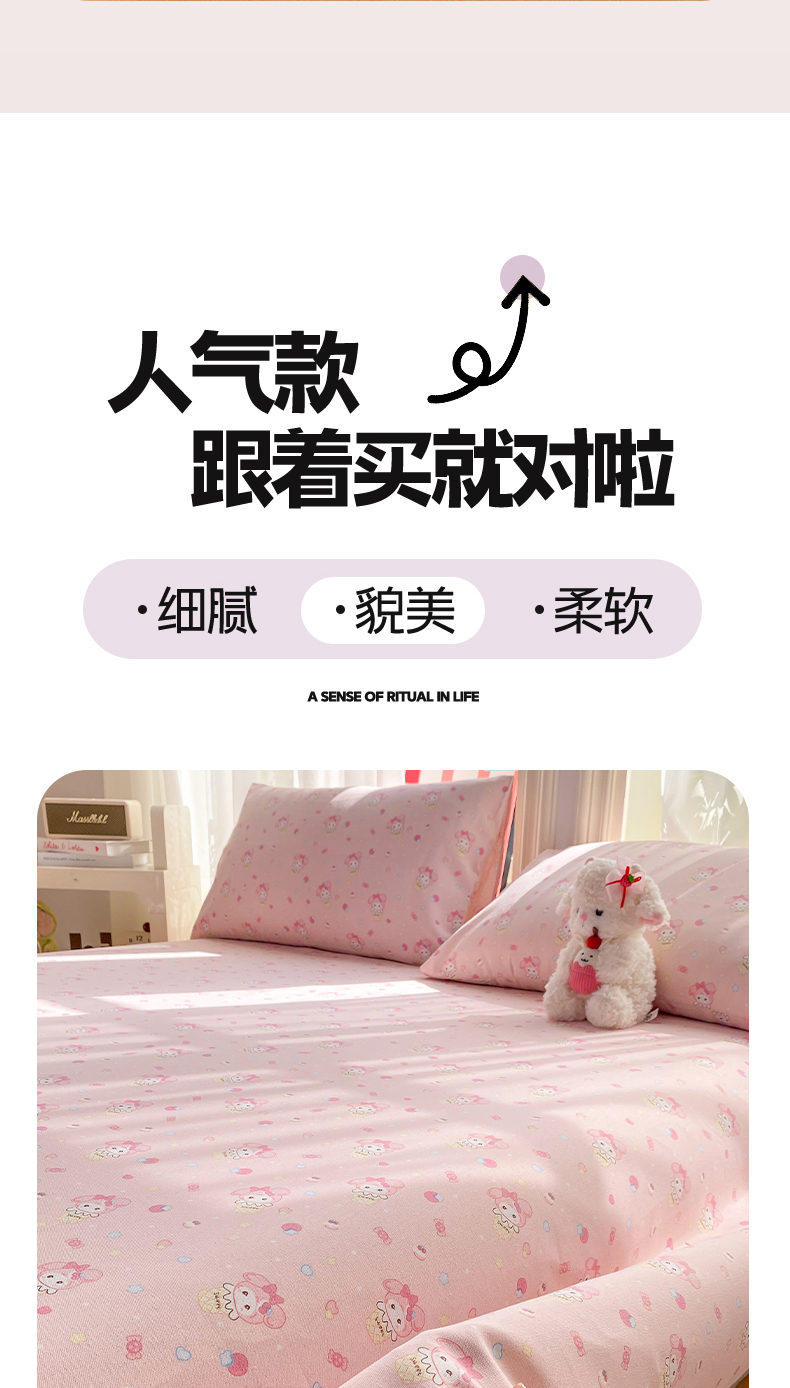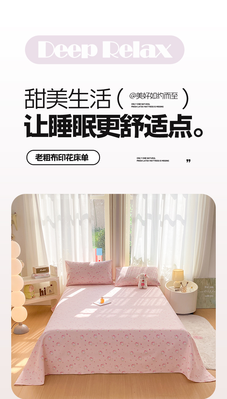 • 91家纺网 家纺一手货源 找家纺 晓时候 20226新款细纱原棉老粗布床单印花床单单件凉席三件套 小美冰激凌