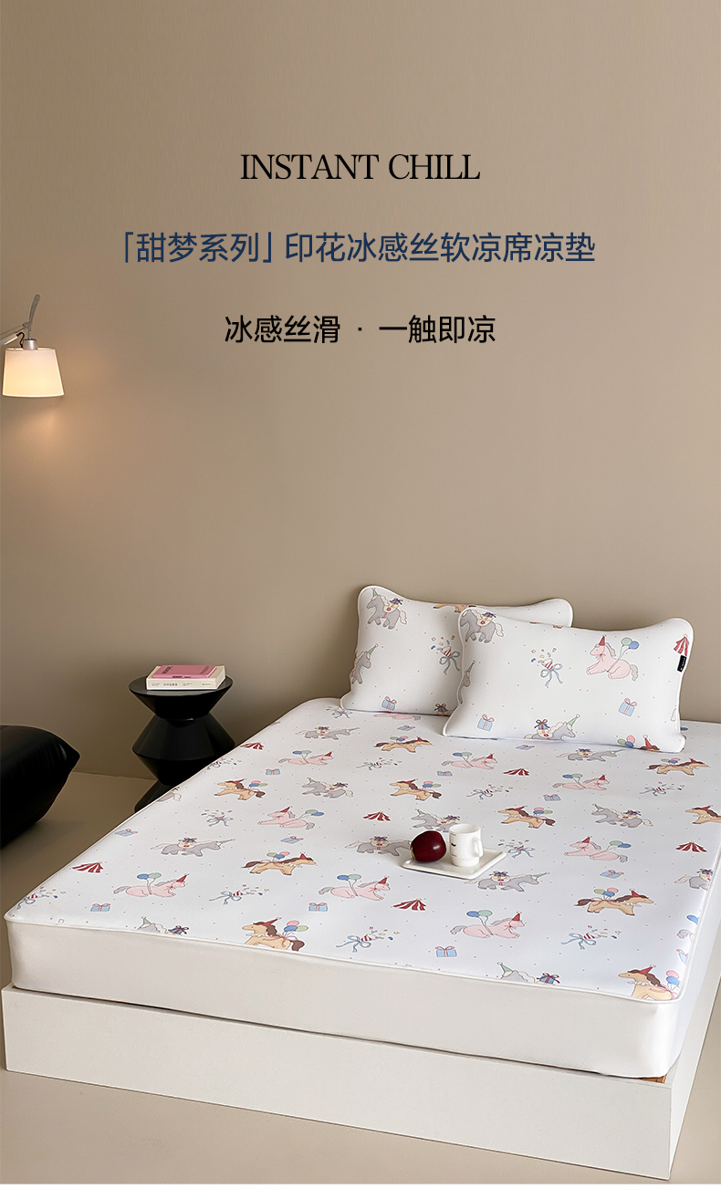 商品名称:(总)三味舒屋 2026新款【甜梦派对】印花凉感丝软凉席凉垫(床笠款)