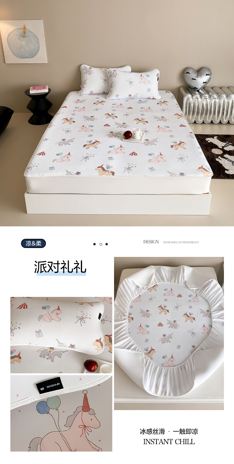 (总)三味舒屋 2026新款【甜梦派对】印花凉感丝软凉席凉垫(床笠款)