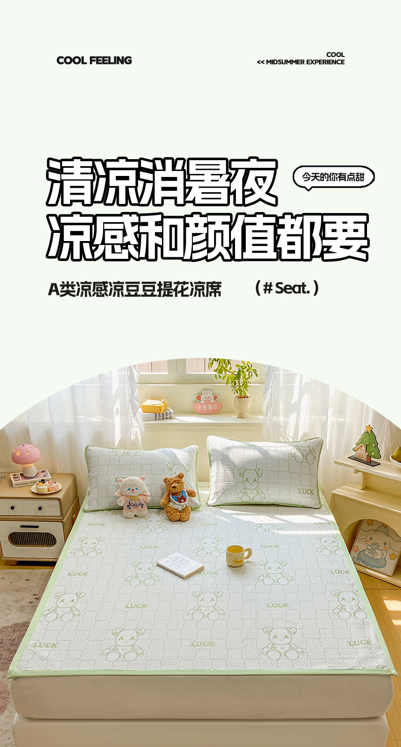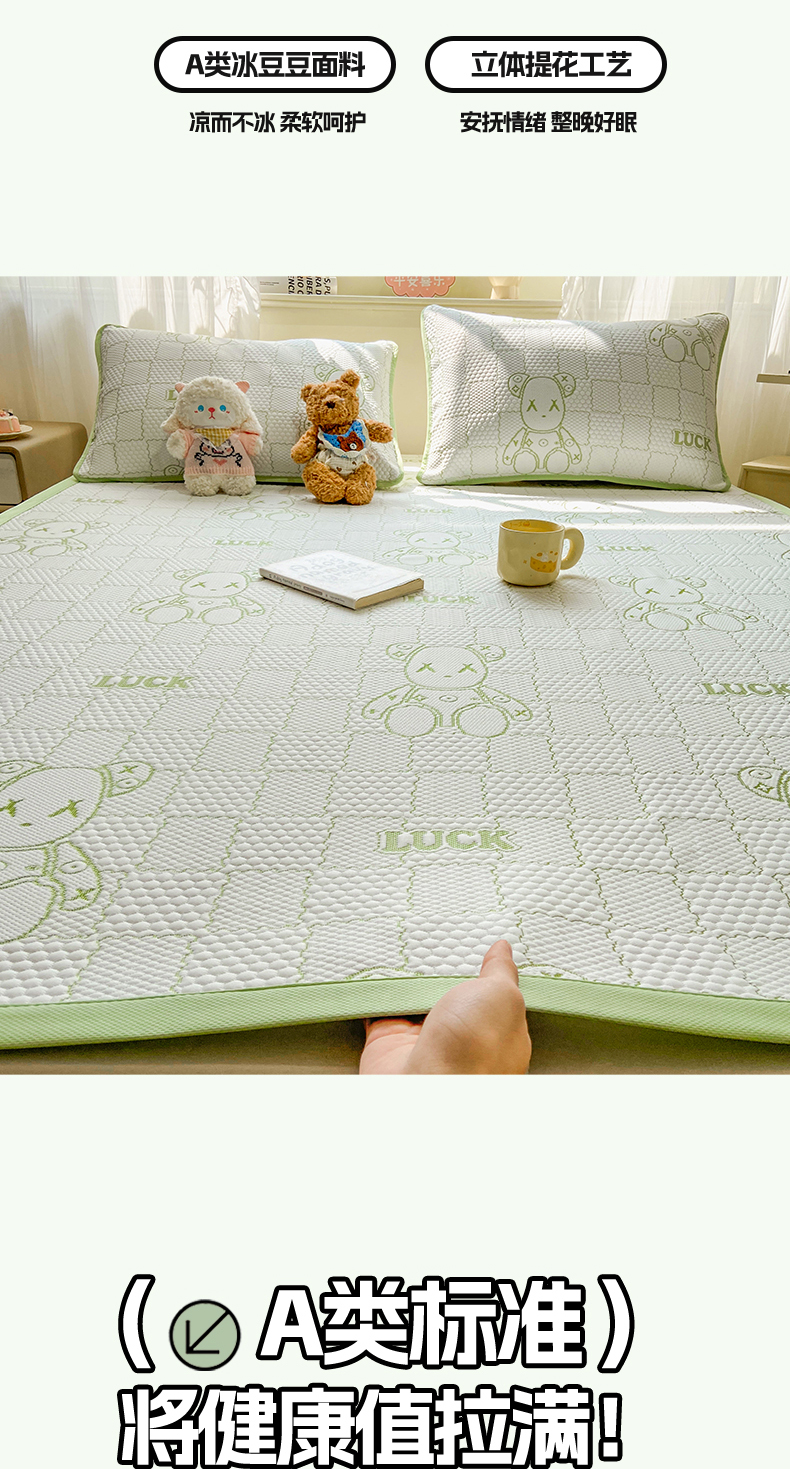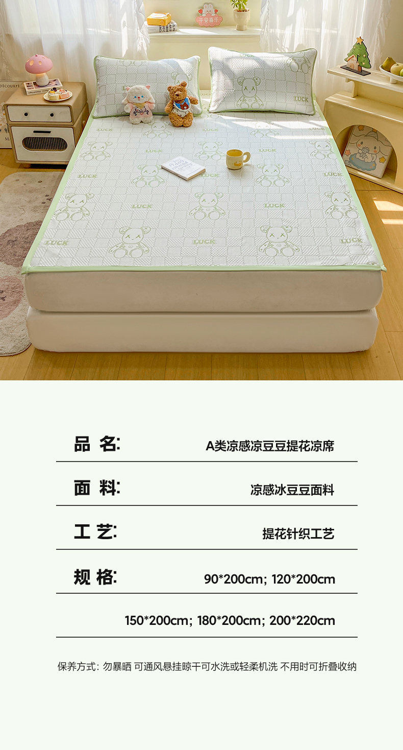 当前位置: 91家纺网 > 商品网购 > 床上用品 > 凉席 > 冰丝席 > 春寻家纺 2026春夏新款A类凉感凉豆豆提花凉席席子 幸运熊-蓝-床席款