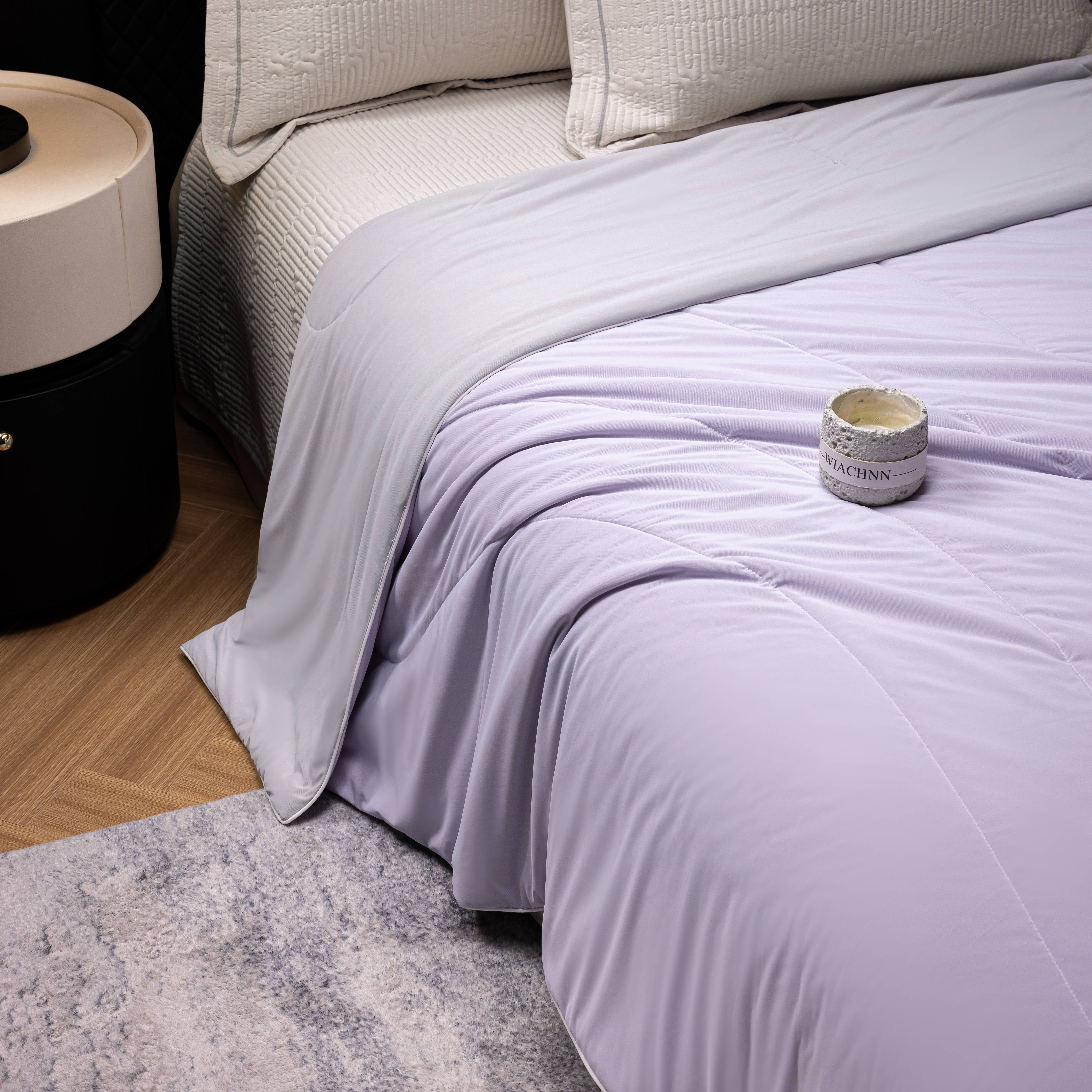 (总)丽卡家纺2026新款冰丽丝锦氨凉感夏被子被芯,淡雅紫+天空蓝,青草绿+浅银灰,珊瑚橘+浅银灰