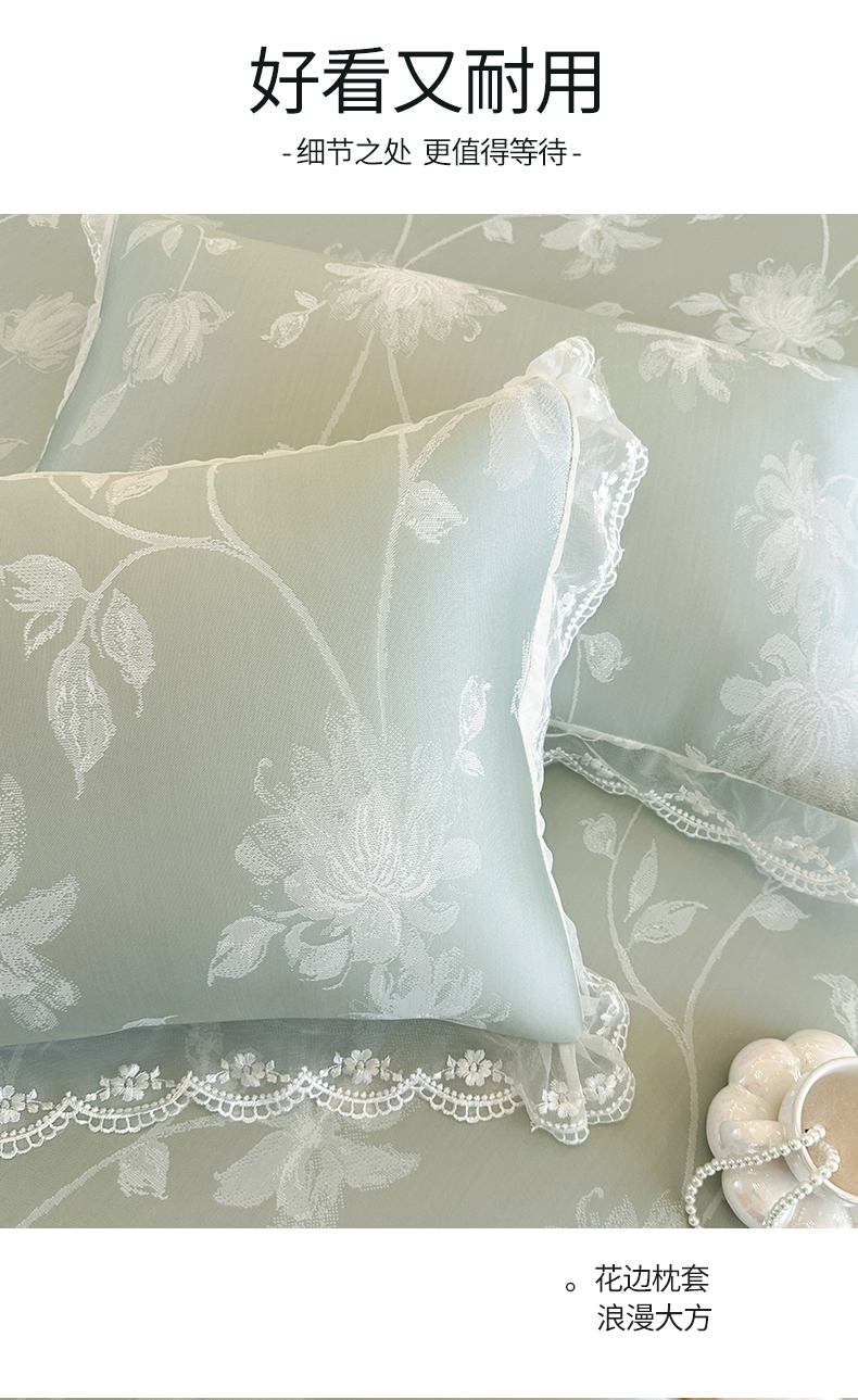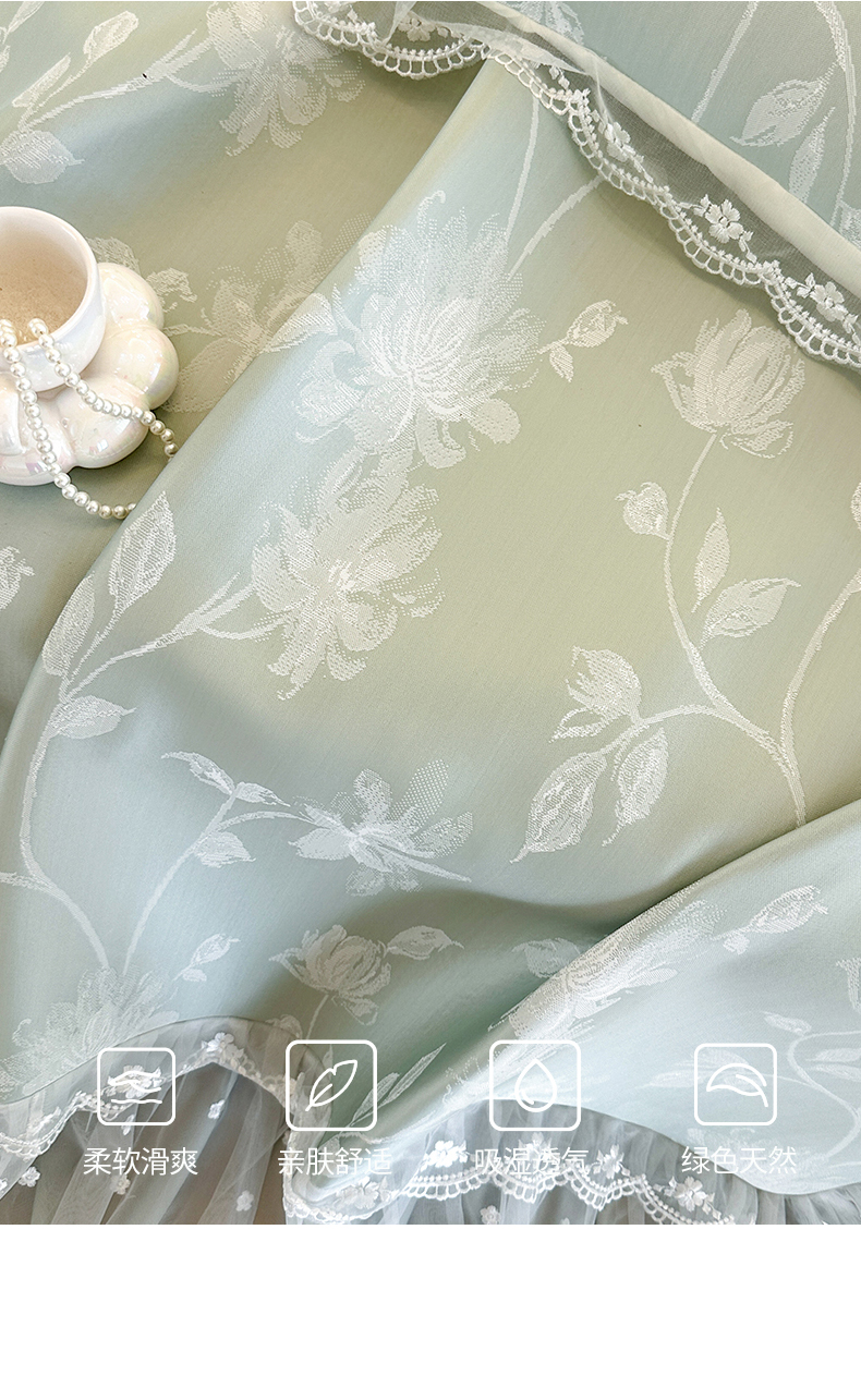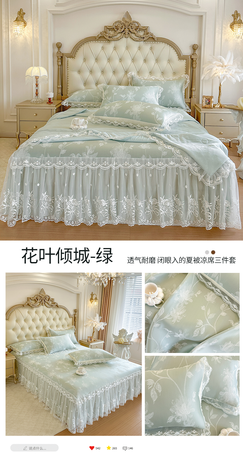 • 91家纺网 家纺一手货源 找家纺 网红馆(ck家纺) 2026新款冰丝夏被床裙款凉席三件套-花叶倾城 花叶倾城-绿