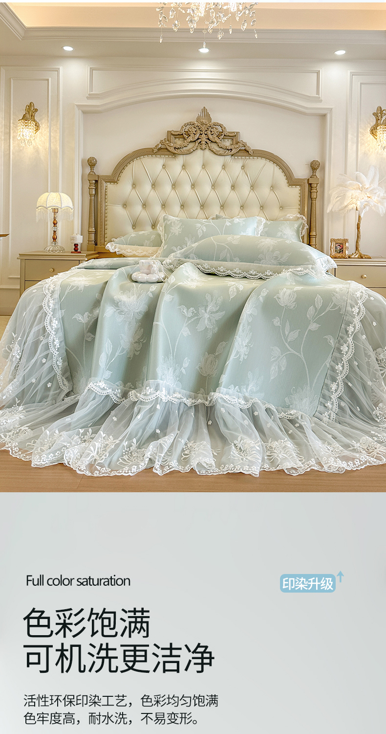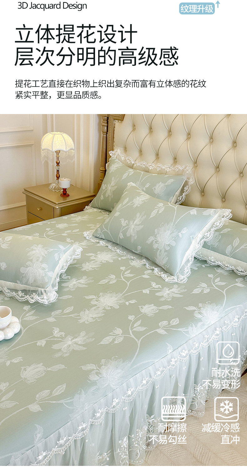 网红馆(ck家纺) 2026新款冰丝夏被床裙款凉席三件套-花叶倾城 花叶倾城-绿