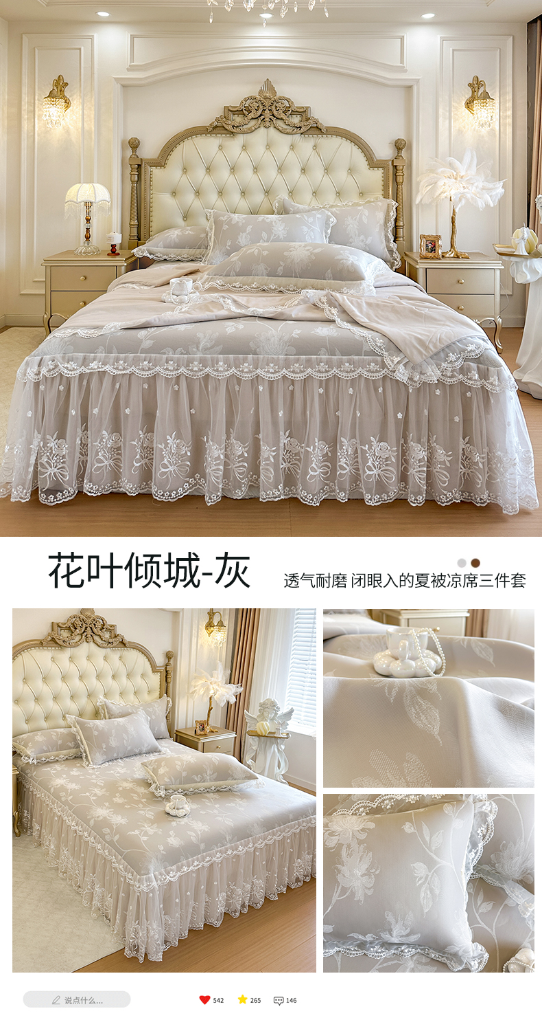 • 91家纺网 家纺一手货源 找家纺 (总)网红馆(ck家纺) 2026新款冰丝夏被床裙款凉席三件套-花叶倾城,花叶倾城-粉,花叶倾城-灰,花叶倾城-绿