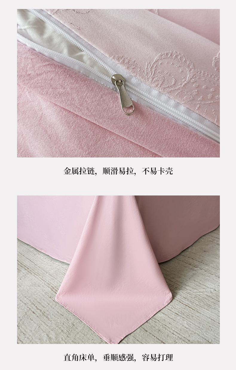 当前位置: 91家纺网 > 商品网购 > 床品套件 > 四件套 > 韩秀家纺 2026新款A类亮丝提花立体浮雕贡缎臻棉床裙四件套 云缎雅颂-樱花粉