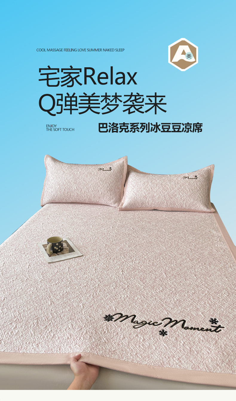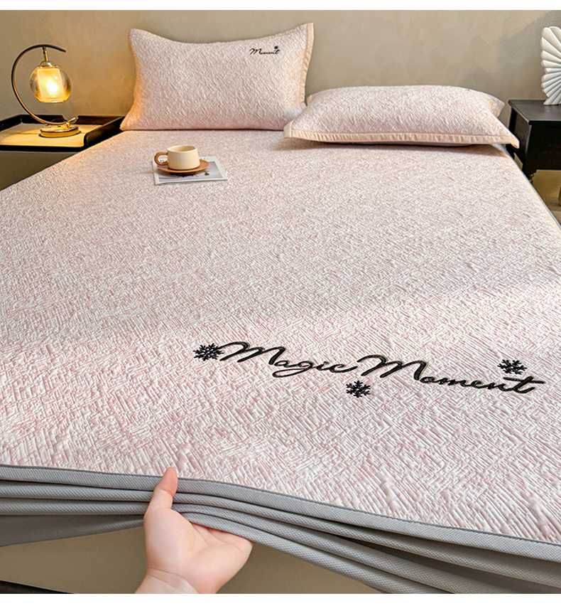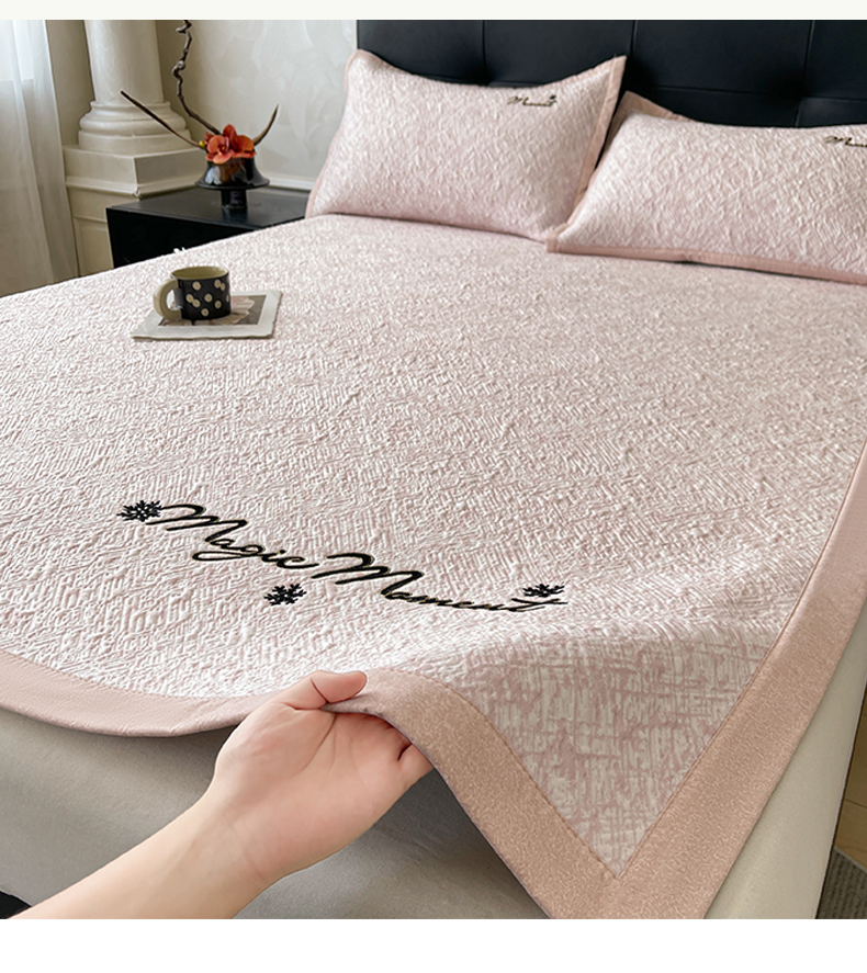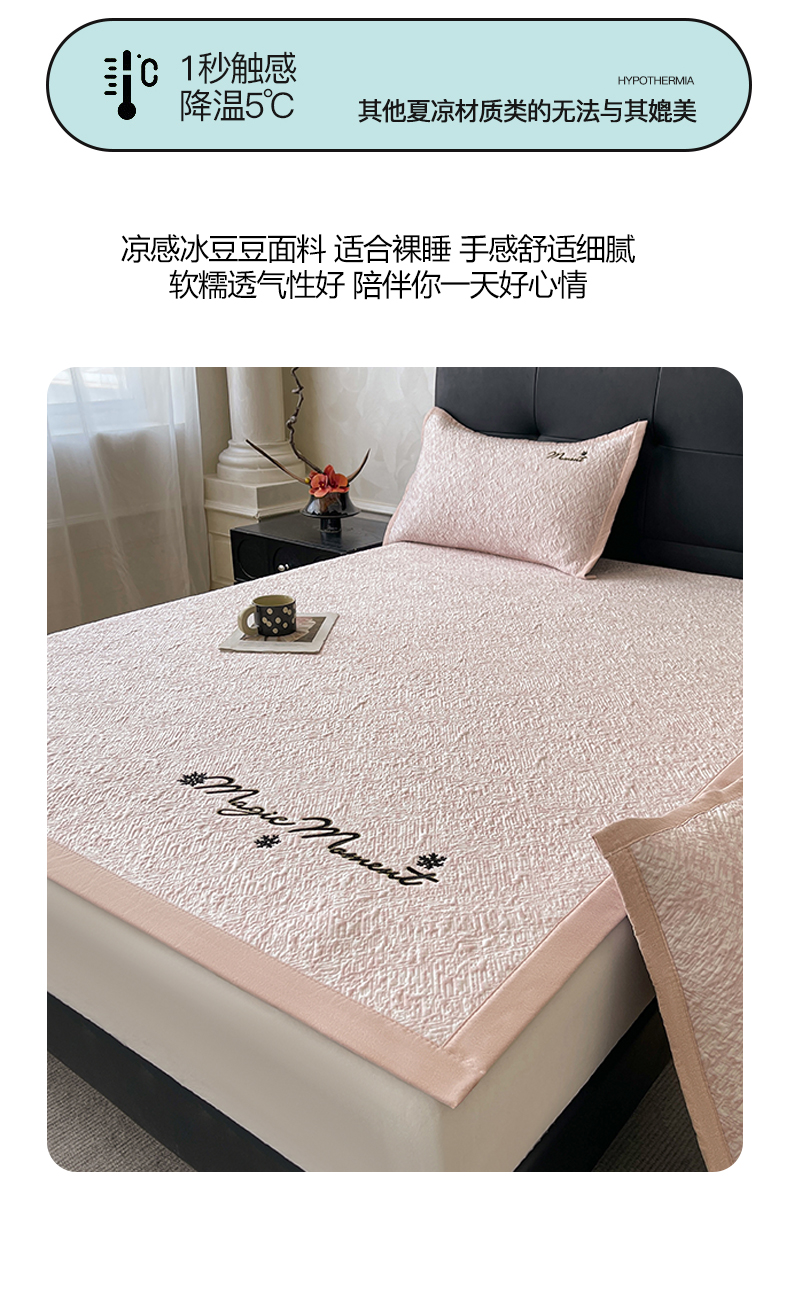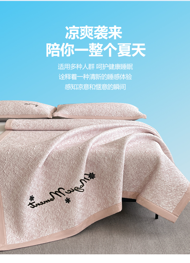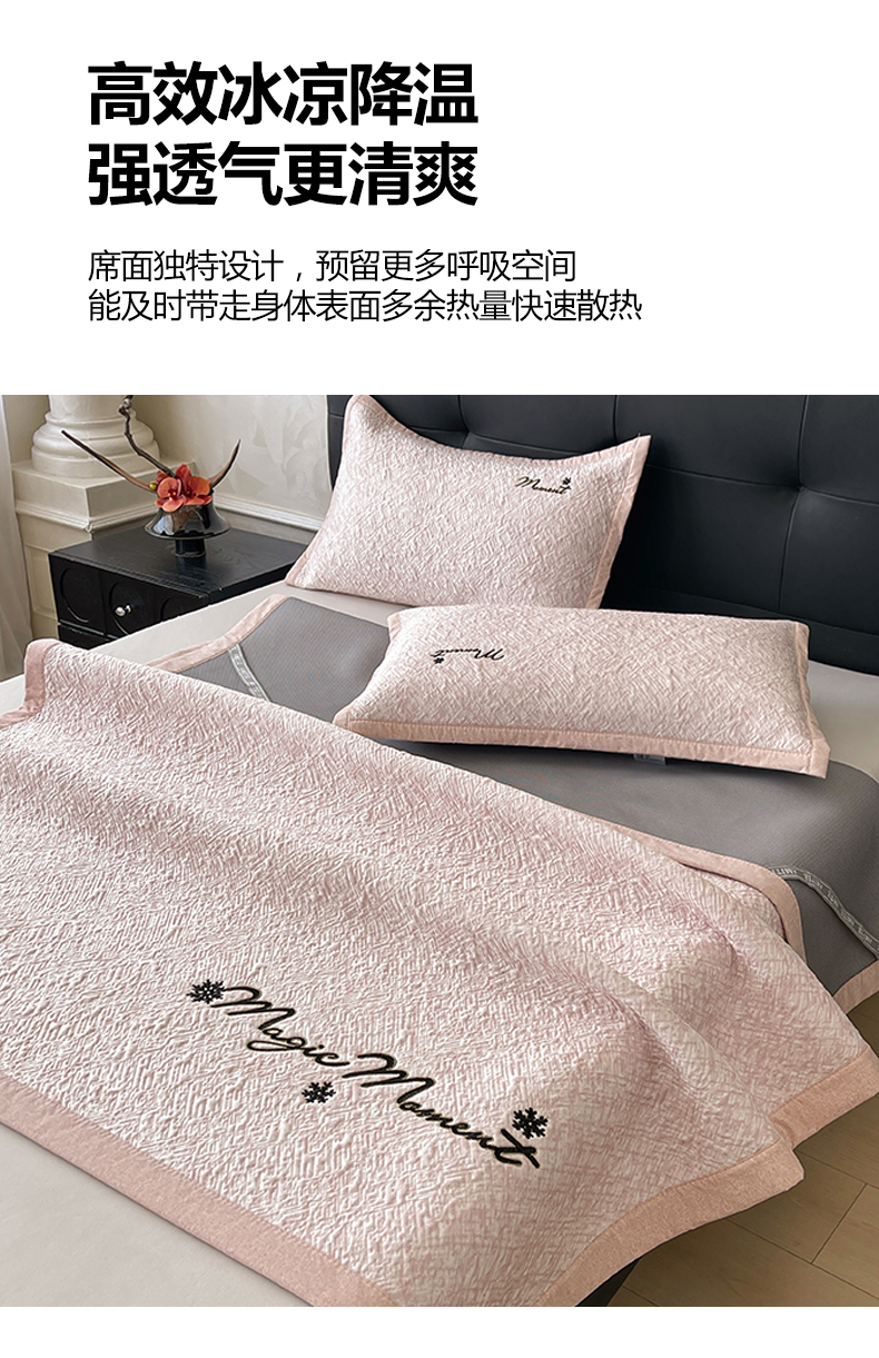商品名称:慕木家纺 2026新款巴洛克刺绣系列冰豆豆凉席和床笠凉席席子空调软席 巴洛克-粉 床席款