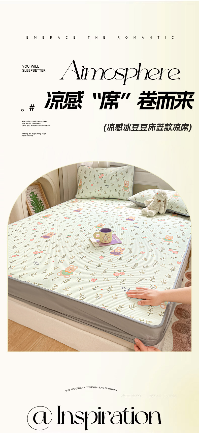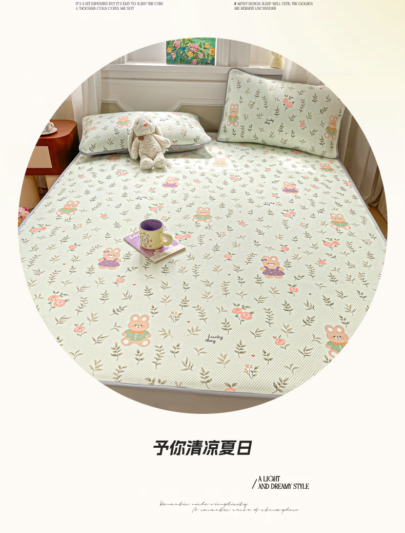 (总)女子家纺 2026新款大斜纹复合冰丝凉席-床席款,爱心气泡粉,萌熊印象,奶油草莓,拈花湾兰,七彩龙,奇妙幻想,水木年华,午后茶花,悠悠小元,尤克里里粉