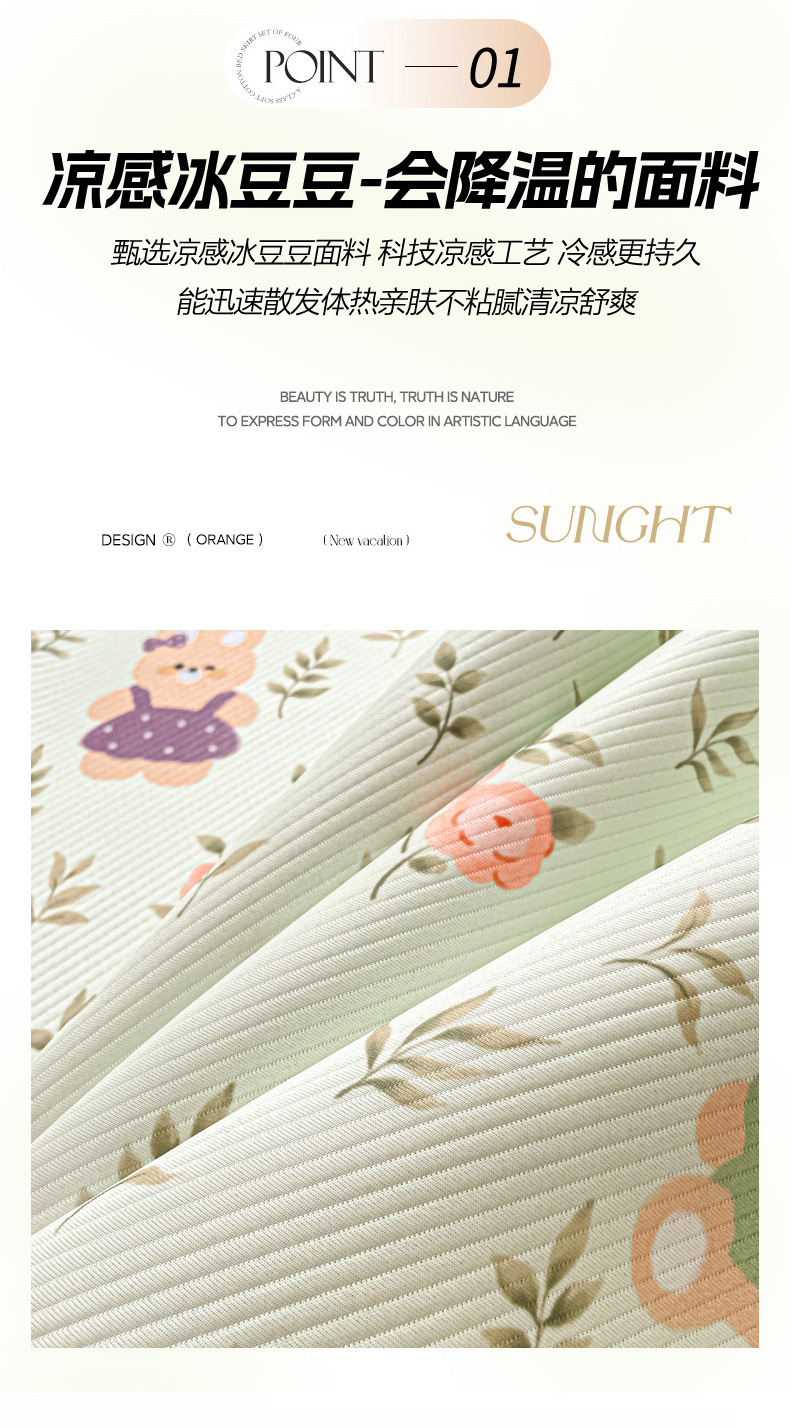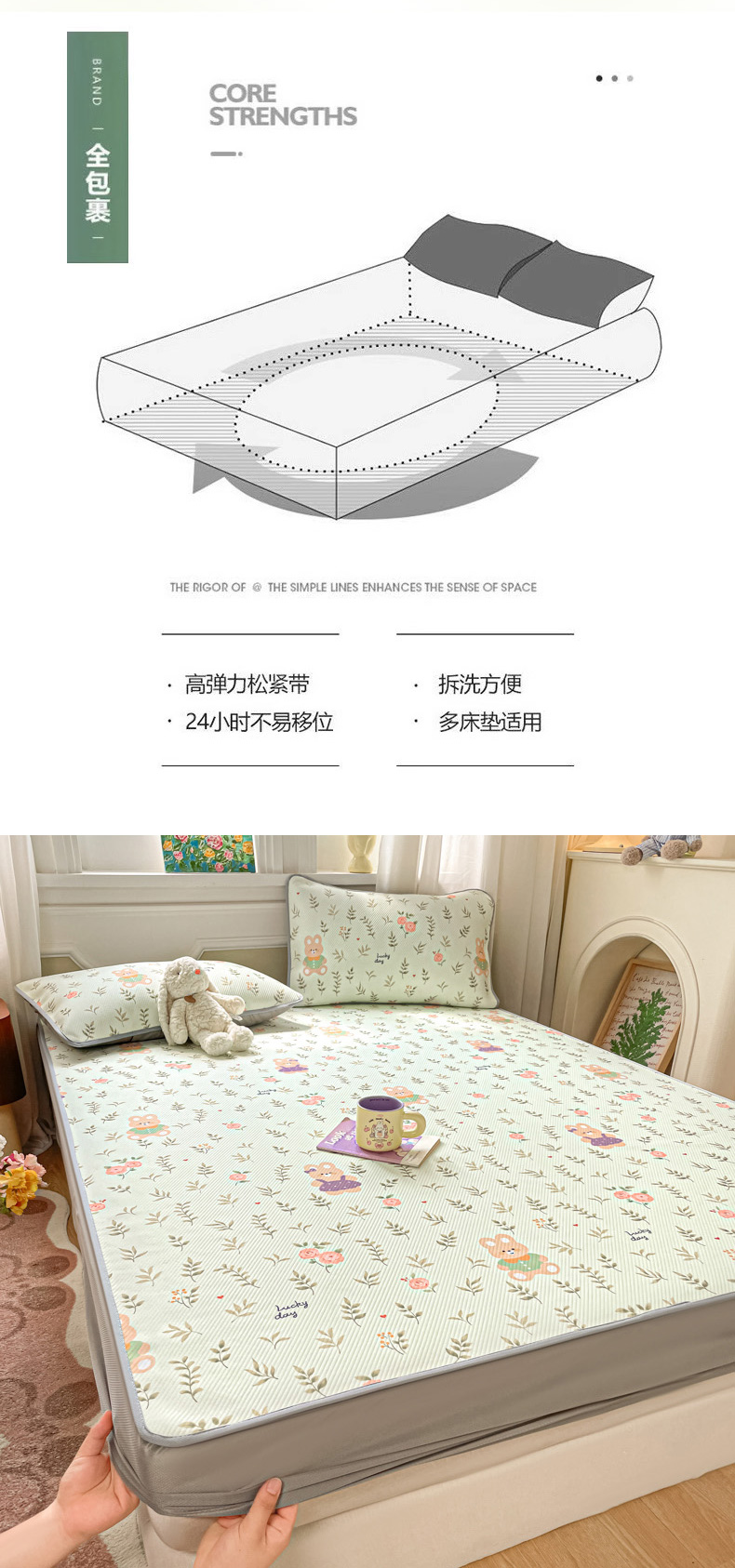 商品名称:女子家纺 2026新款斜纹凉感豆豆床笠款 床笠-青叶萌物